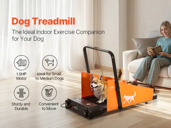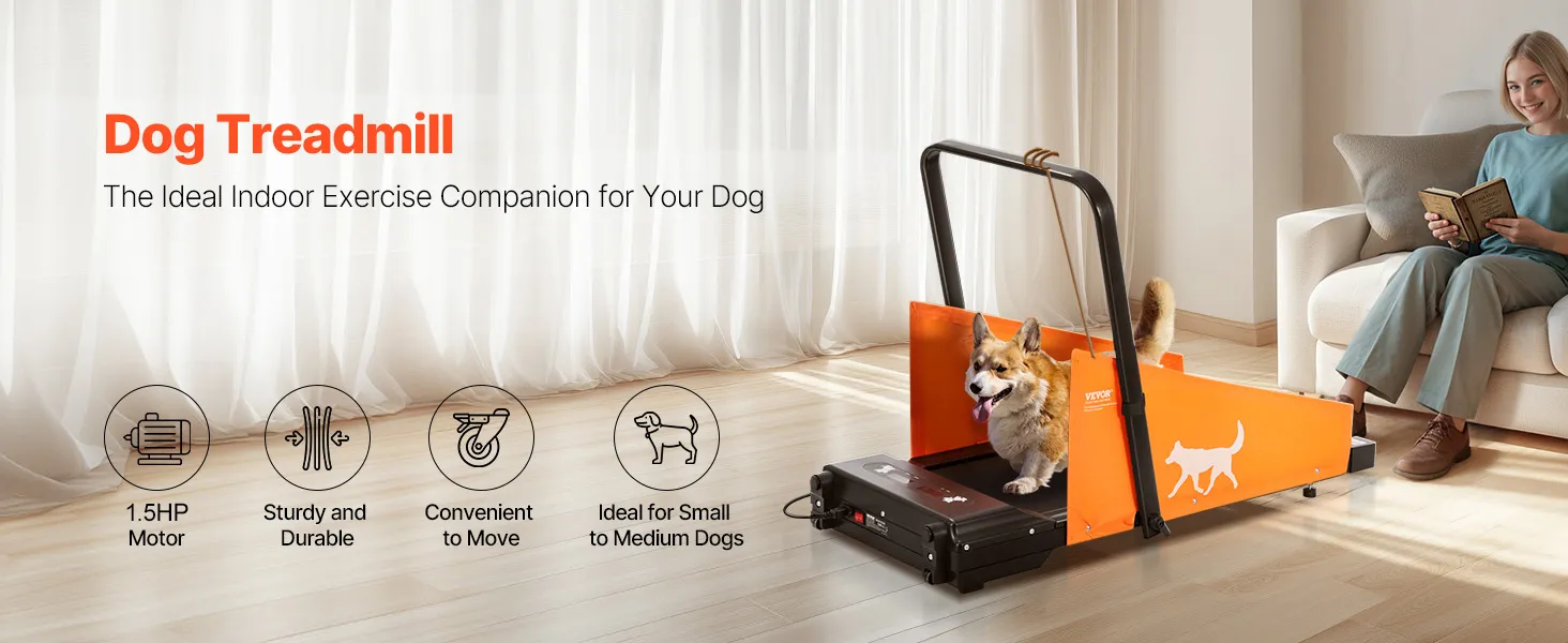 VEVOR Hundelaufband für mittelgroße Hunde, 90kg, elektrisches Hundelaufgerät, Indoor-Haustierlaufband mit LCD-Bildschirm und faltbarer U-förmiger Stange, Dog Pacer-Laufband für Übungen, 121x64x80cm