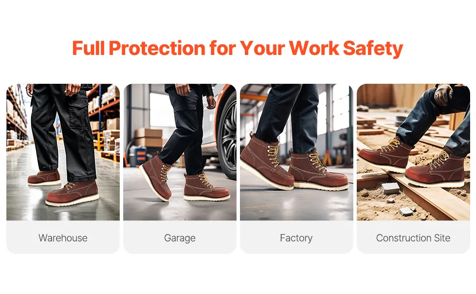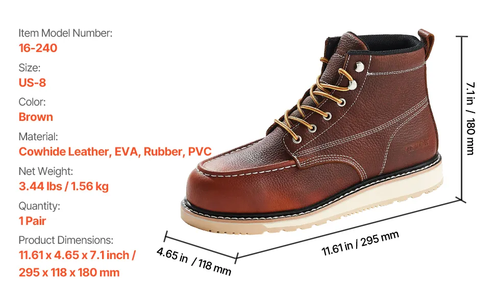 VEVOR Arbeitsstiefel mit Stahlkappe, US-Größe 8, wasserdichte Arbeitsschuhe für Herren, Sicherheitsschuhe, leichte und atmungsaktive Herrenstiefel mit EVA-Gummisohle für Industrie und Bau, Braun