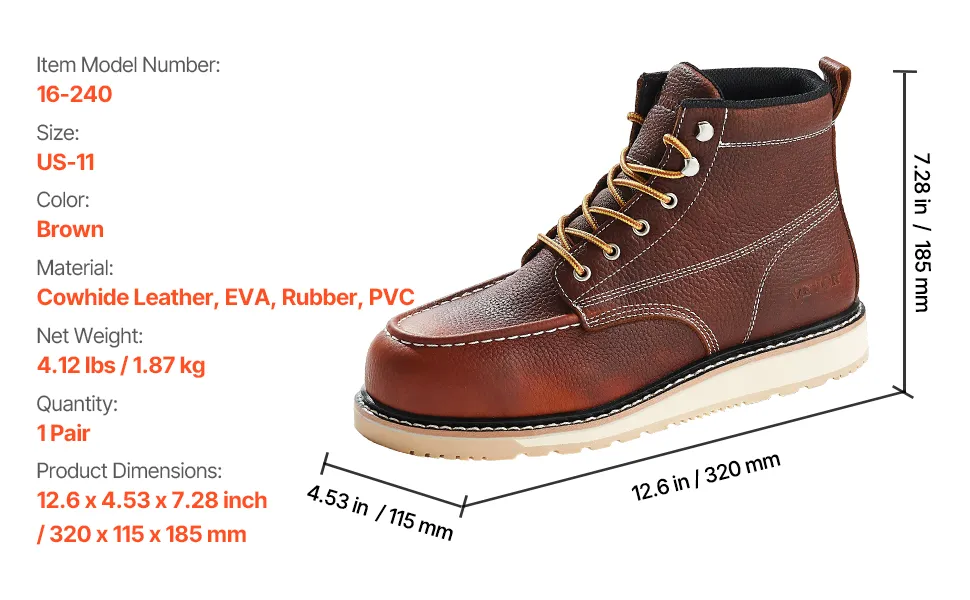 VEVOR Arbeitsstiefel mit Stahlkappe, US-Größe 11, Arbeitsschuhe für Herren, Sicherheitsschuhe, leichte und atmungsaktive Herrenstiefel mit EVA-Gummisohle für Industrie und Bau, Braun