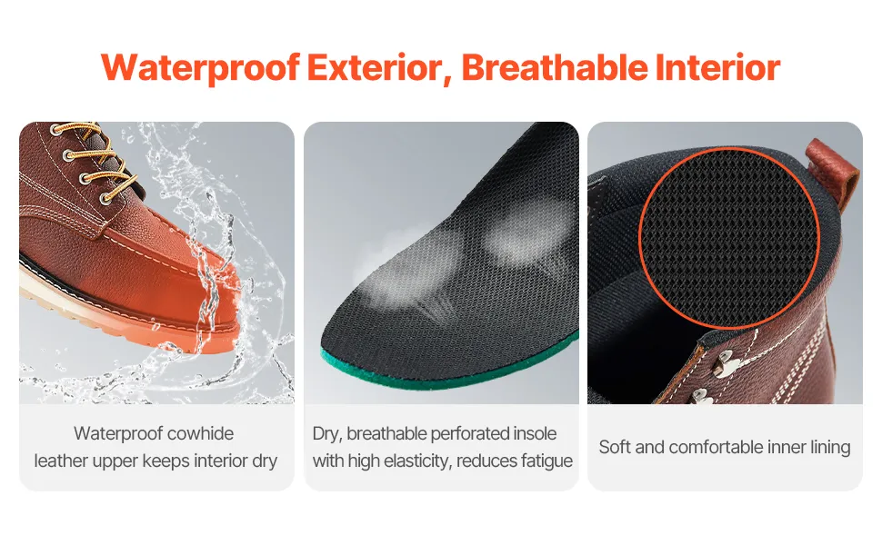 Atmungsaktiv und leicht: Diese Stiefel bestehen aus wasserdichtem Leder, um Trockenheit fernzuhalten, während die atmungsaktiven Einlegesohlen Fußschweiß verhindern. Die weiche Gummisohle erhöht den Komfort und macht sie ideal für Arbeiter, die auf Baustellen längere Zeit stehen oder gehen müssen