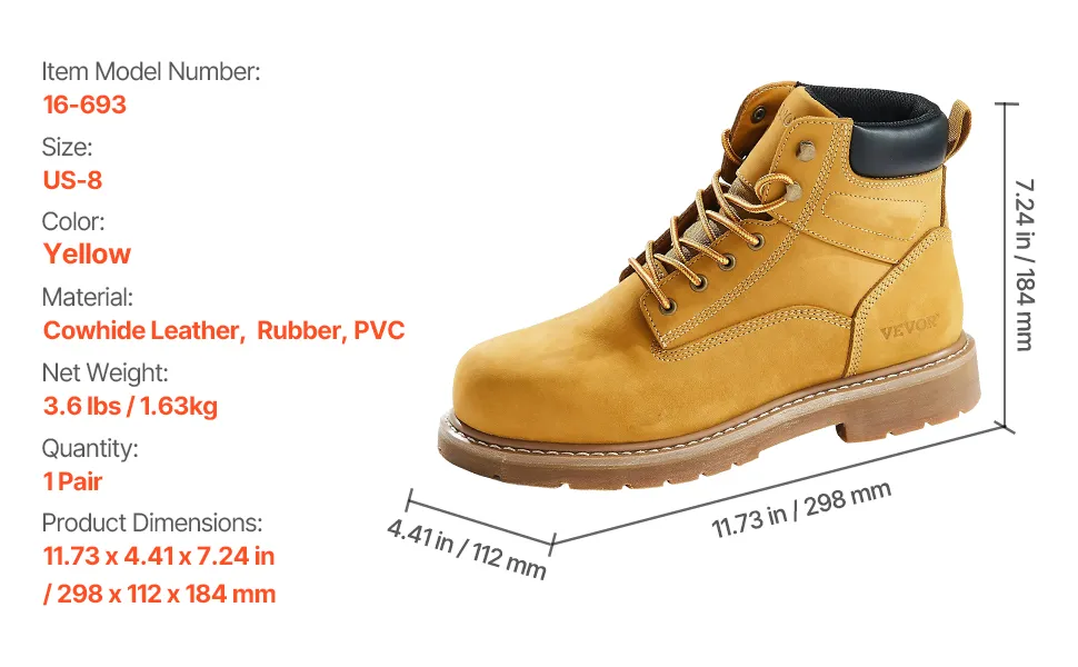 VEVOR Arbeitsstiefel mit Stahlkappe, US-Größe 8, Arbeitsschuhe für Herren, Sicherheitsschuhe, leichte und atmungsaktive Gummisohle für Herrenstiefel für Industrie und Bau, Braungelb