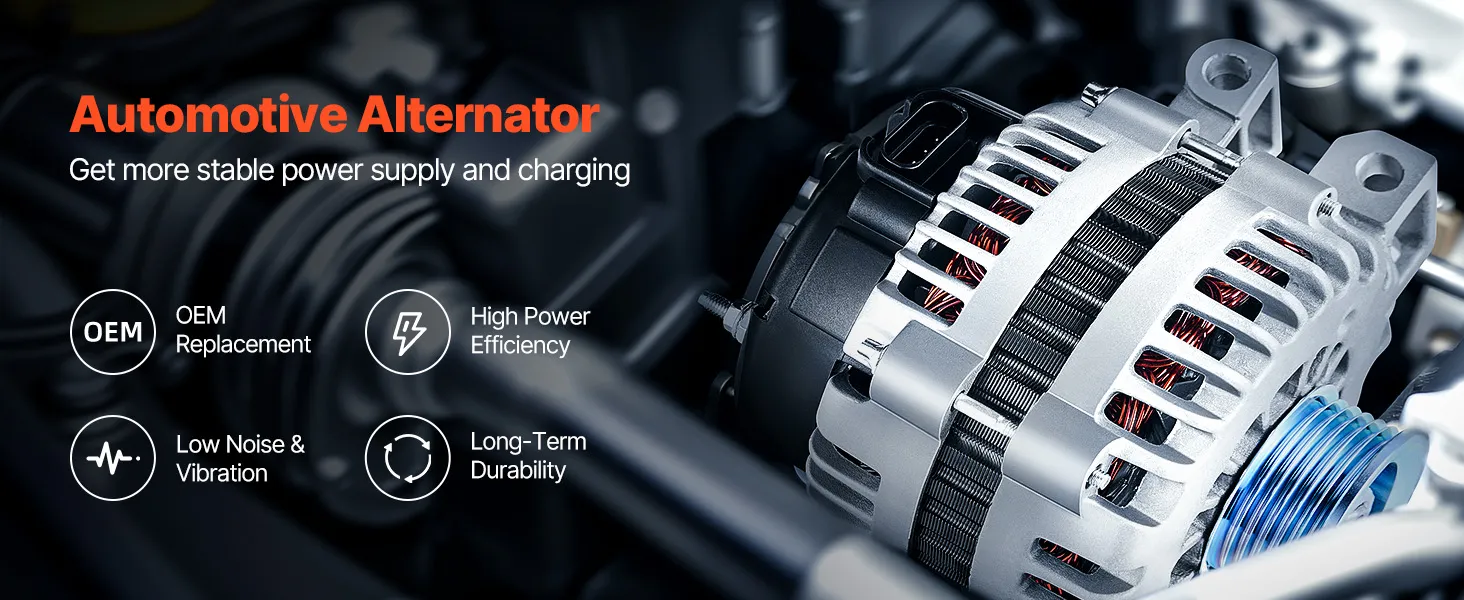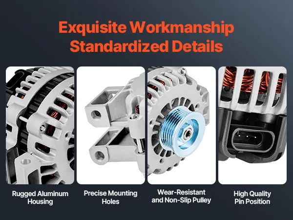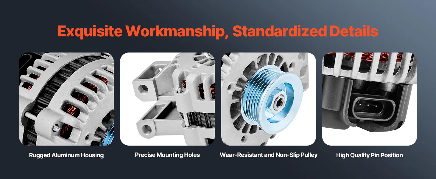 Langlebige Materialien: Unser Auto-Ersatzgenerator besteht aus hochtemperaturbeständigen Kupferspulen und einem leichten Aluminiumgehäuse mit Lüfter. Diese Kombination verbessert die Wärmeableitung und -leitfähigkeit und hält gleichzeitig harten Bedingungen stand