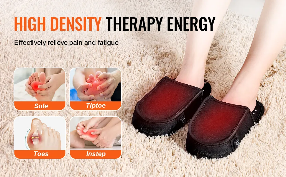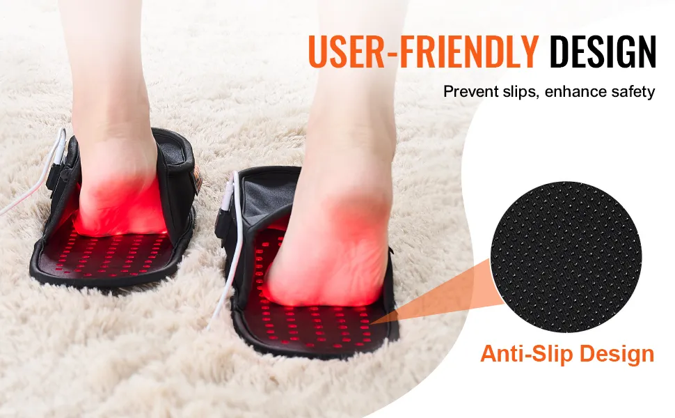 Der VEVOR-Slipper für die Rotlichttherapie nutzt hochdichte Energie, um verschiedene Fußschmerzprobleme zu behandeln. Ob ermüdete Fußsohlen, Zehenschmerzen oder Beschwerden im Fußgewölbe und Spann, dieser Schuh bietet gezielte Linderung und Entspannung.