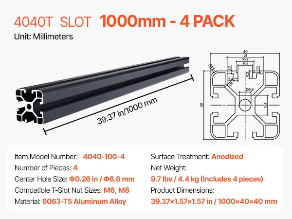 4040 T Linearschiene – Europäischer Standard: Unsere Aluminium-Extrusionsschiene umfasst 4 Schienen aus Aluminiumlegierung (je 39,37 Zoll/1000 mm) – alles, was Sie für eine einfache Einrichtung benötigen!