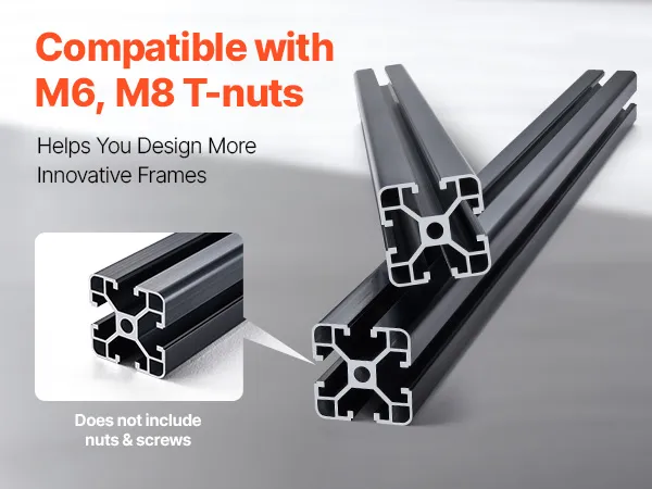 Einfach anzupassen: Das seitliche Nutendesign ist mit M6-, M8-T-Nutensteinen, Riemenscheiben und mehr kompatibel – für eine kinderleichte Montage. Ideal für Heimwerkerprojekte und schnelle Aufbauten. Schrauben und Muttern sind nicht im Lieferumfang enthalten.