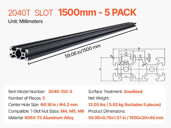 2040 T Linearschiene – Europäischer Standard: Unsere Aluminium-Extrusionsschiene umfasst 5 Schienen aus Aluminiumlegierung (je 59,06 Zoll/1500 mm) – alles, was Sie für eine einfache Einrichtung benötigen!