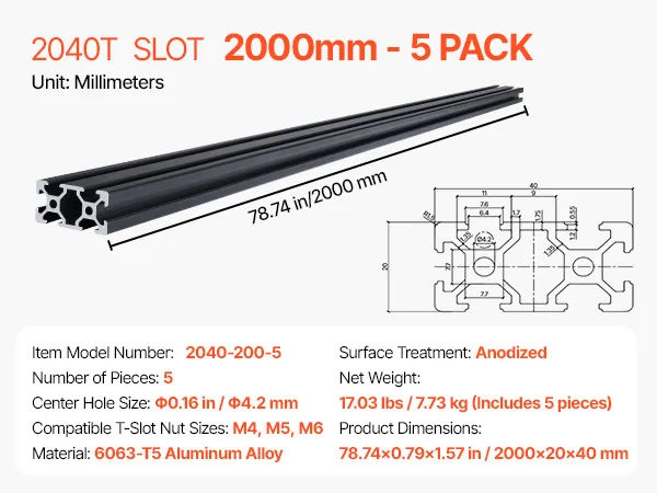 2040 T Linearschiene – Europäischer Standard: Unsere Aluminium-Extrusionsschiene umfasst 5 Schienen aus Aluminiumlegierung (je 78,74 Zoll/2000 mm) – alles, was Sie für eine einfache Einrichtung benötigen!