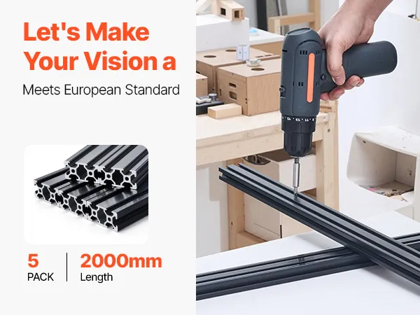 VEVOR 5er Set 2000 mm T-Nut 2040 Aluminium-Strangpressprofil, eloxierte Linearschiene nach europäischem Standard, Nutenprofil für 3D-Drucker, CNC-Maschine DIY, Lasergravur, Schwarz