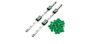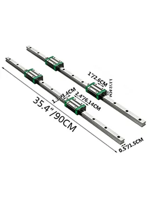 Der Linearführungs- und Lagerungssatz enthält 2 Stk. 35,4 Zoll / 900 mm lange HSR15-Schienenwellen, 4 HSR15-Blöcke und ein paar staubdichte Stopfen.