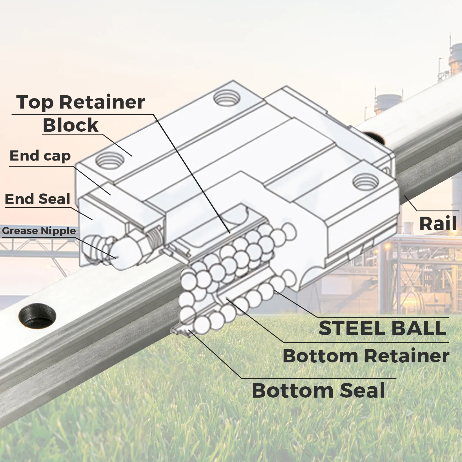 Die Blöcke sind mit präzisen Lagern ausgestattet, die es den Blöcken ermöglichen, frei und schnell auf der Schiene zu gleiten. Sie sind auf dem Gebiet allgegenwärtig, das hohe Präzision erfordert.