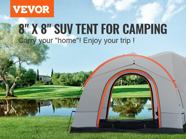 Erhöhen Sie Ihr Campingerlebnis mit dem VEVOR SUV-Campingzelt. Es ist vielseitig einsetzbar mit verschiedenen Fahrzeugen und bietet Platz für 6-8 Personen. Es bietet starken Wetterschutz. Das Design besteht aus zwei Schichten. Es ist wasserdicht nach PU2000. Die Fiberglasstangen sind robust und rostbeständig für mehr Stabilität. Dieses Truck-Zelt ist eine starke und zuverlässige Option, die Ihre Campingausflüge verbessern wird, egal wohin Sie gehen. Es ist für Familien, Freunde und Leute gedacht, die gerne alleine campen.