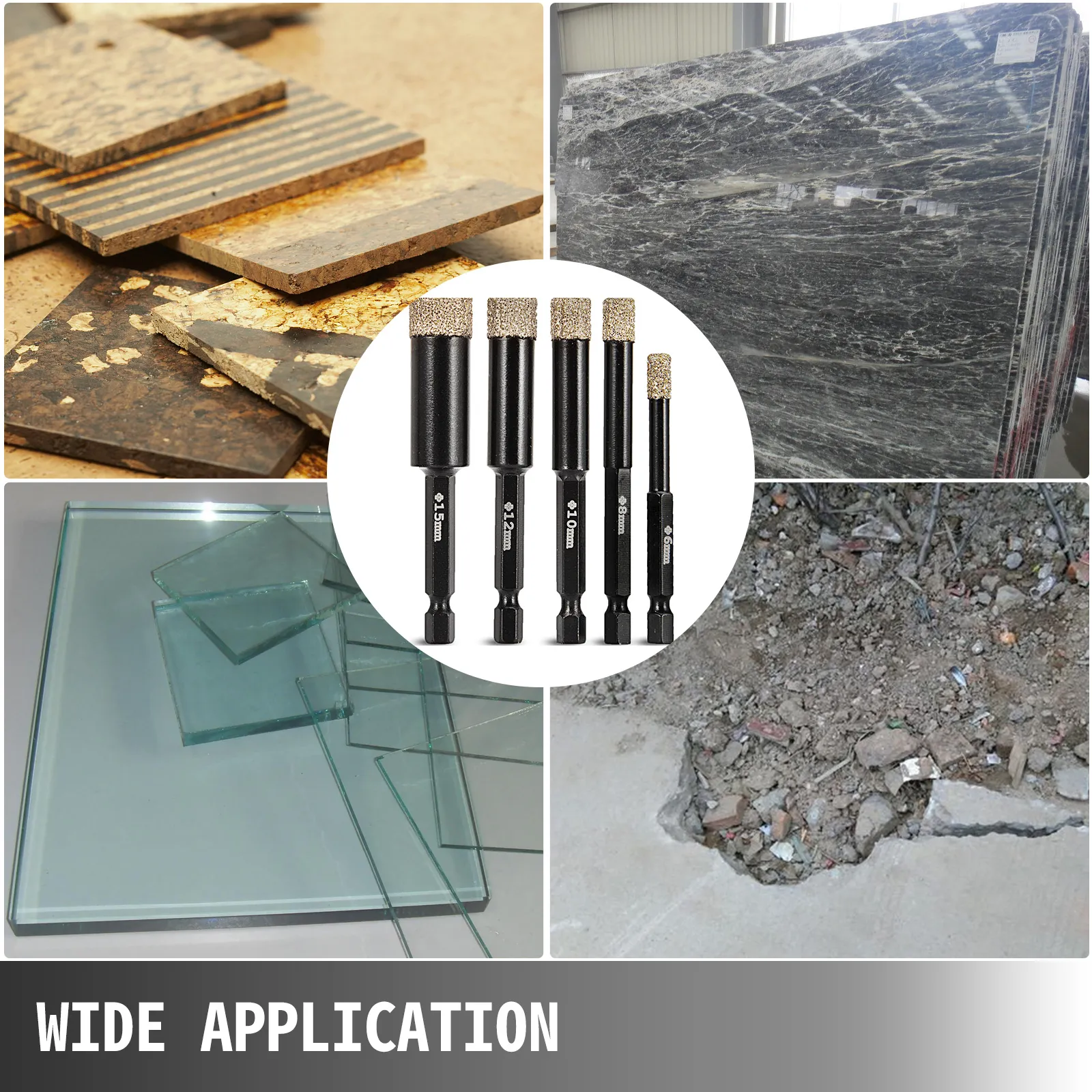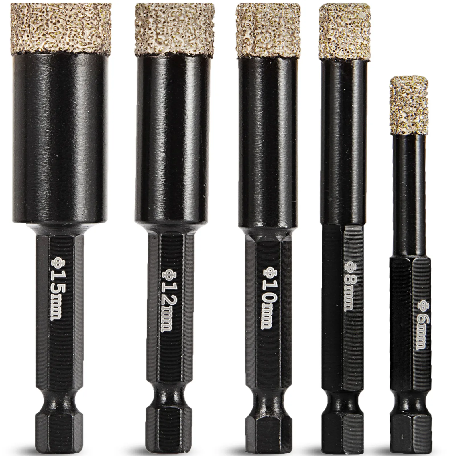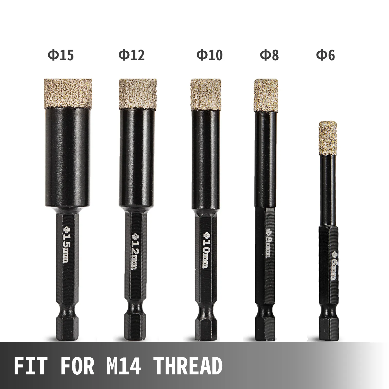 Dieses brandneue professionelle Diamantbohrer-Set mit Durchmessern von 6 / 8 / 10 / 12 / 15 mm (0,24 / 0,3 / 0,39 / 0,47 / 0,6 Zoll) und M14-Gewinde bietet einen schnellen, einfachen und sauberen Schnitt. Kein Wasserbedarf lässt Ihren Arbeitsplatz sauber.