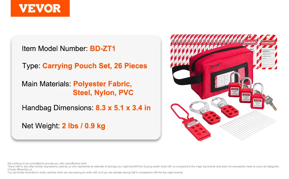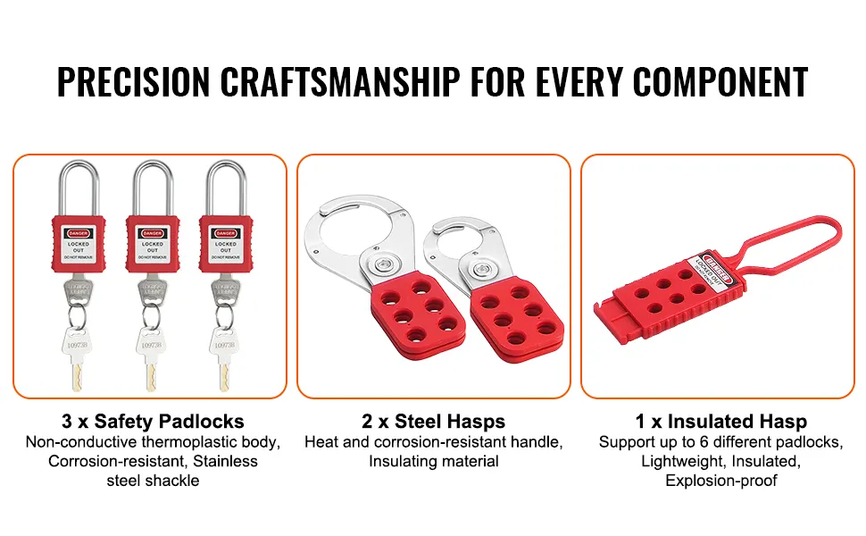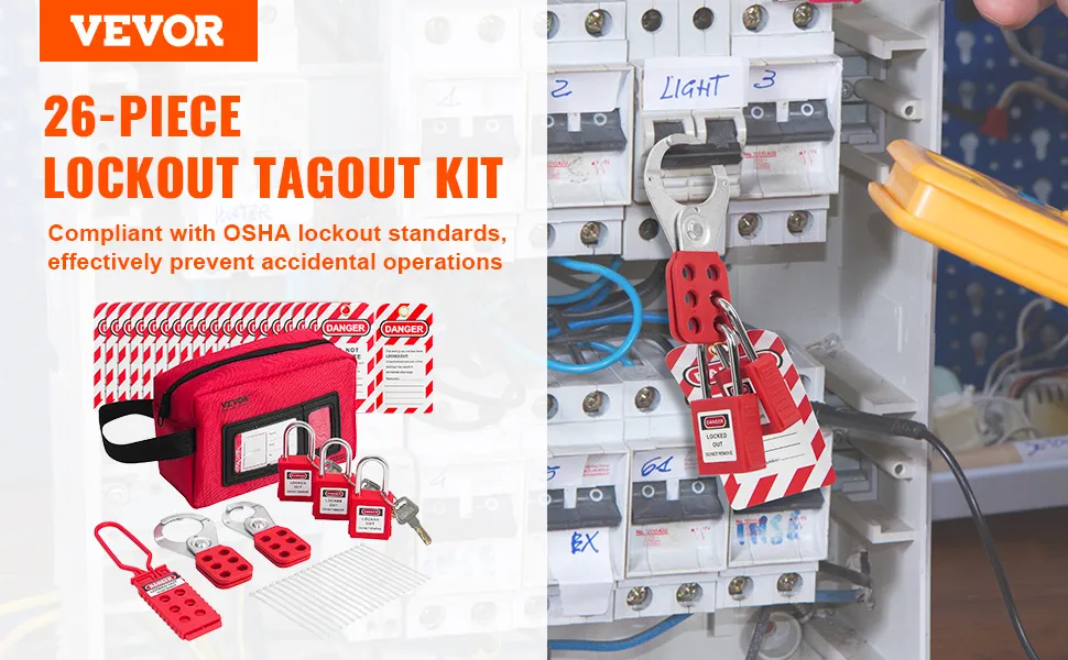 Wir haben eine umfassende Lösung für dieses Problem bereitgestellt. Das VEVOR-Kit für elektrische Lockout-Tagout-Geräte bietet Ihnen den besten Schutz für Ihre Geräte in Industrie-, Strom- und Maschinenumgebungen. Dieses Kit ist perfekt für die Zusammenarbeit mehrerer Personen geeignet. Jeder hat sein eigenes Schloss und einzigartige Schlüssel, die unbefugten Zugriff auf die Geräte verhindern.