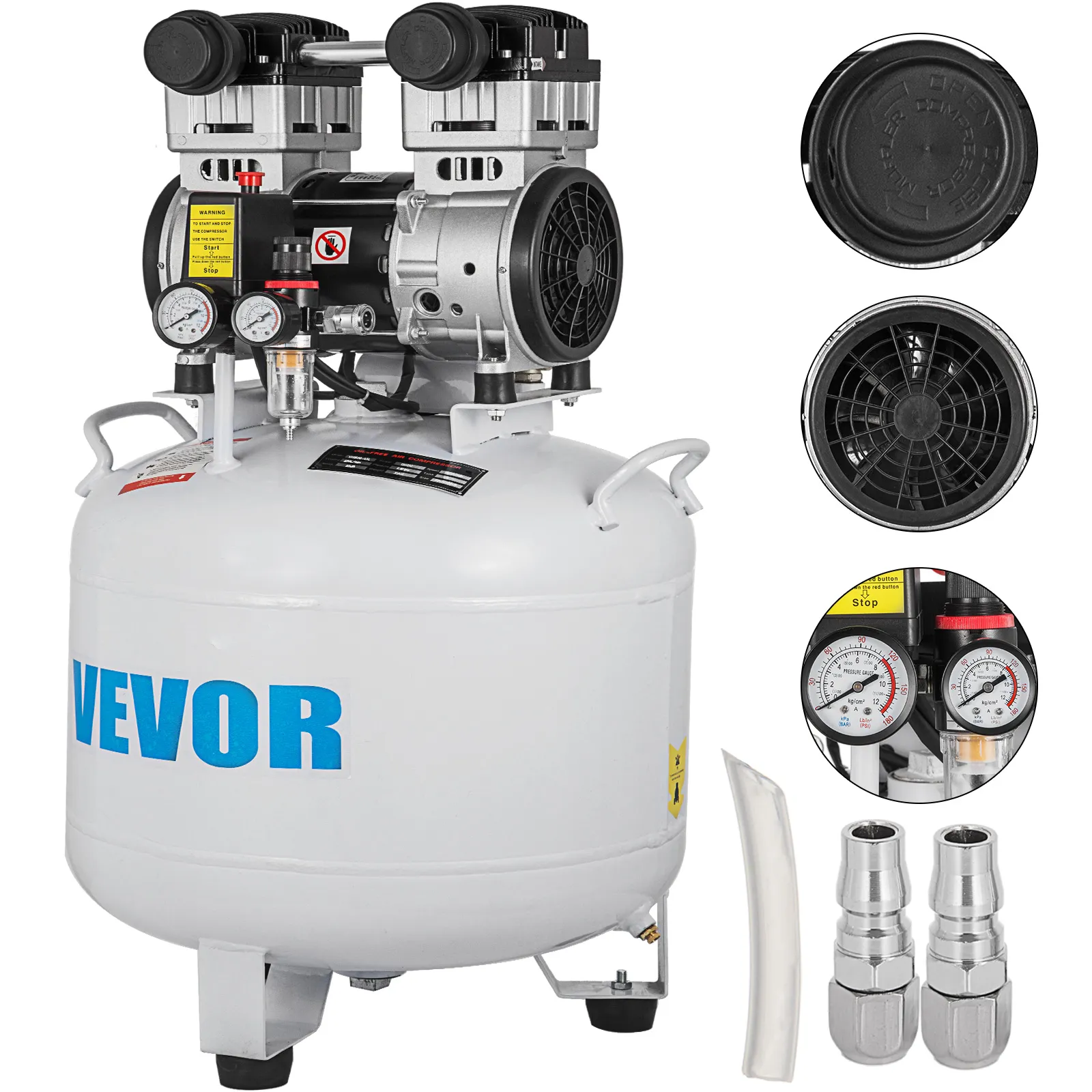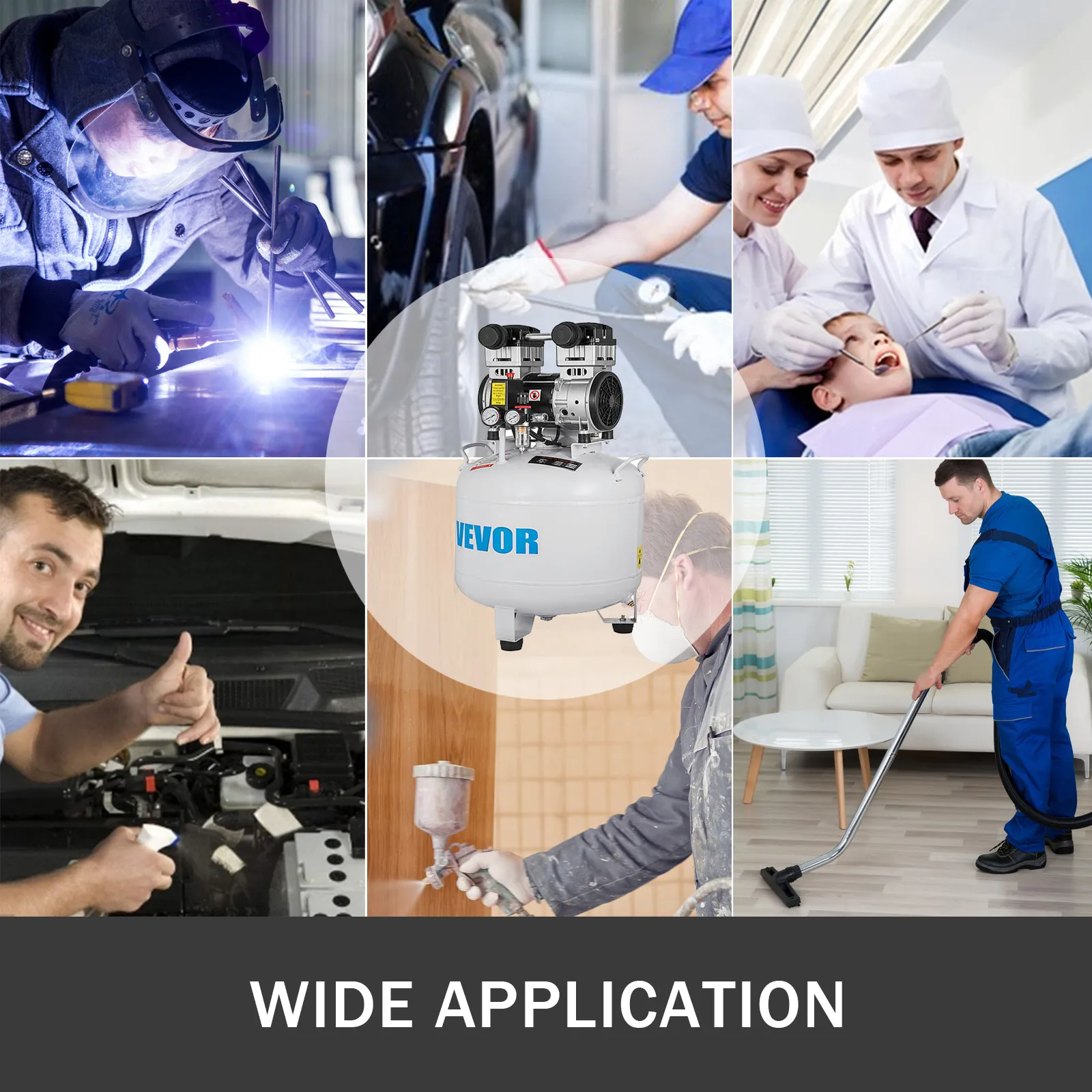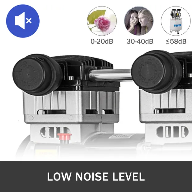Dieser ölfreie Luftkompressor verfügt über einen extrem leisen Motor und eine ölfreie Pumpe für eine kostenlose Wartung. Mit kompaktem Design und einem Motor aus reinem Kupfer ist es leicht zu transportieren und zeichnet sich durch schnellen Luftstrom und starke Leistung aus. Eine gute wahl für Hausreparatur, Reifenaufblasen, Reinigung der Fußbodenheizung, Blechlackierung, Stahlluftpistole, Zahnmedizin usw.