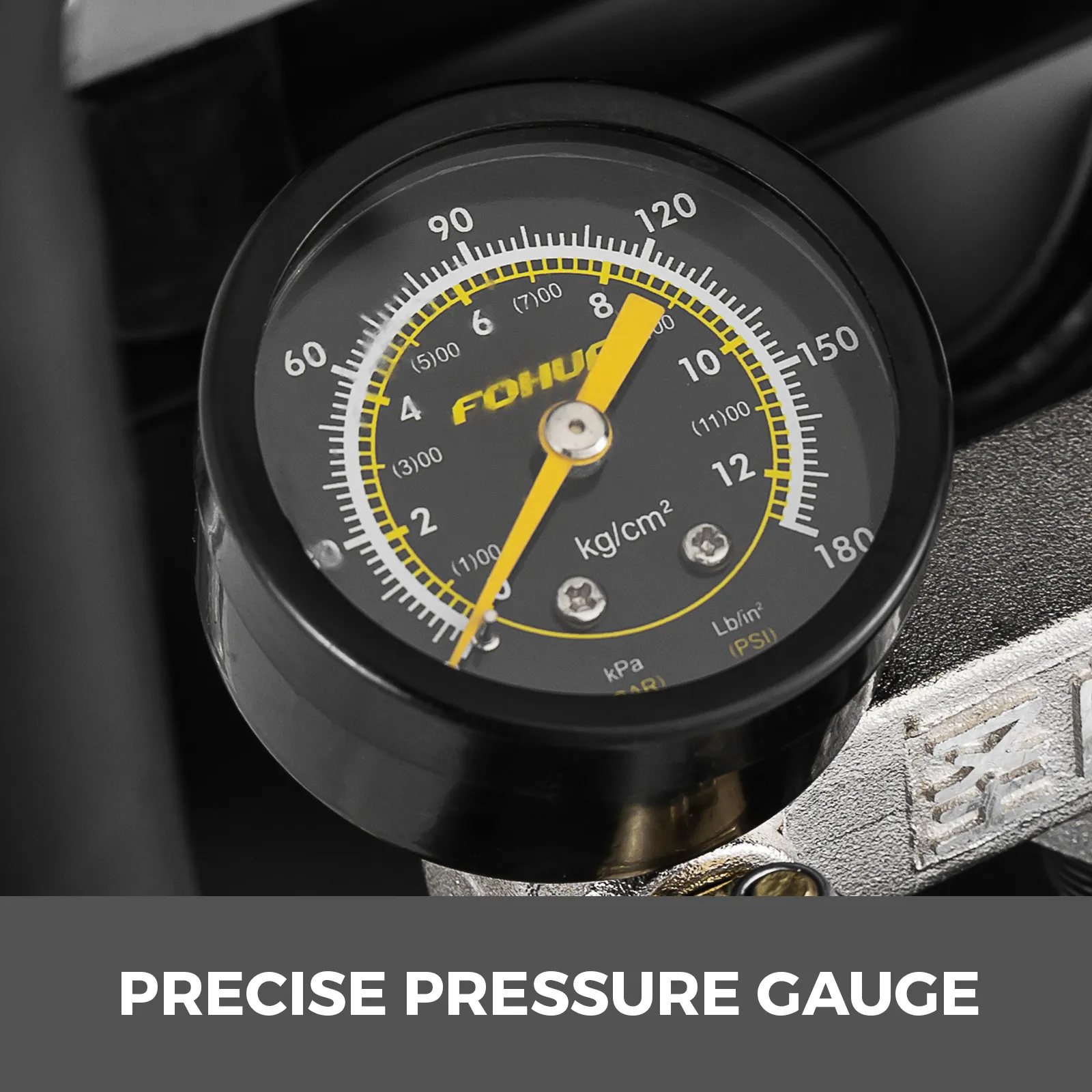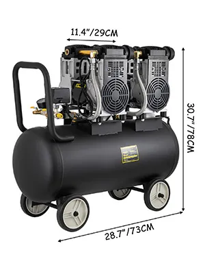 Die großen Räder und der robuste Stahlgriff machen den Luftkompressor tragbarer. Es wird charakterisiert durch kompaktes Design, geringe Größe und Gewicht, leicht zu tragen. Solide Räder machen das Gerät außerdem stabil und robust.