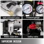 Der ölfreie Luftkompressor verfügt über ein sicheres Magnetventil, ein Manometer, ein Sicherheitsventil, einen Wasserabscheider und ein Ablassventil. Sie sind für Ihren bequemen Betrieb ausgelegt und können den Motor und die verlängerte Lebensdauer schützen.