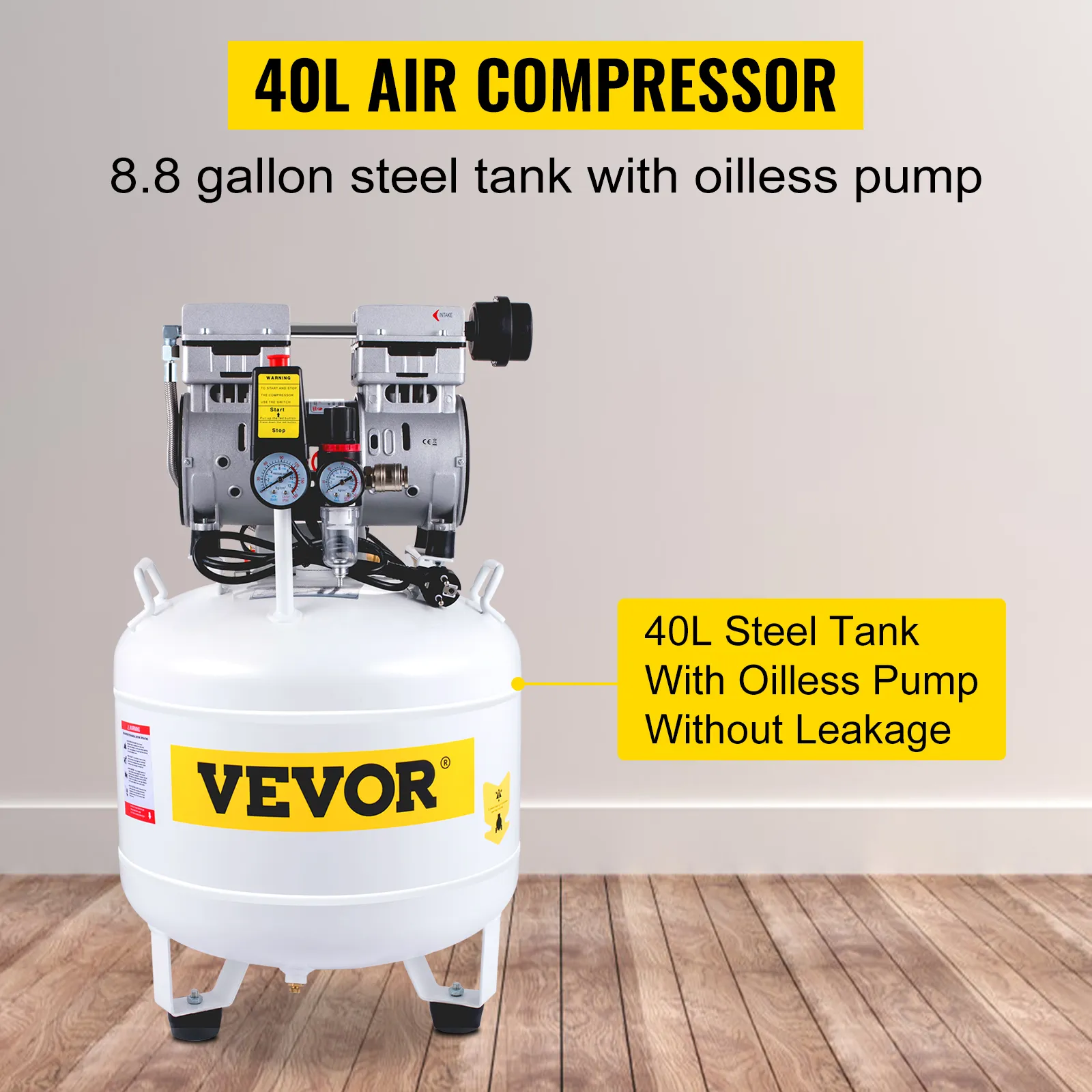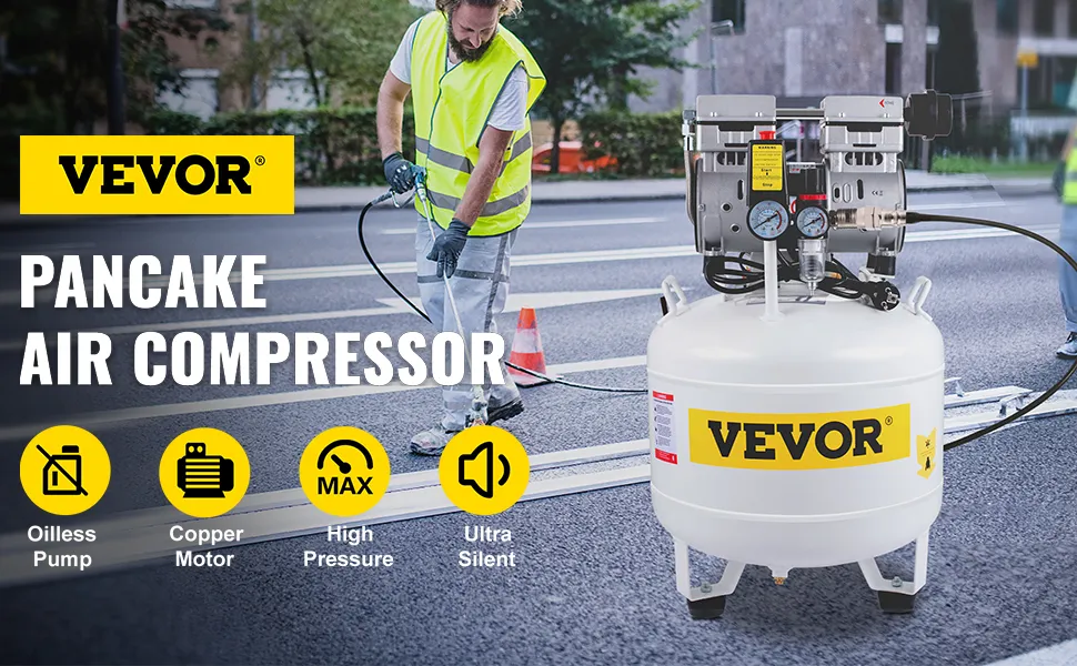 Der Druckluftkompressor verfügt über einen 40 L / 10,6 Gallonen Stahl-Tank, der robust und auslaufsicher ist und für den täglichen Gebrauch geeignet ist. Darüber hinaus erfordert die ölfreie Pumpe keine tägliche Wartung.