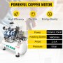 Dieser Kompressor ist mit einem 0,75 PS / 550 W Kupfermotor ausgestattet, der hocheffizient und leise ist, und verfügt über eine Entlüftung zur Wärmeableitung, die eine Überhitzung verhindert. Druck: 115 PSI, Drehzahl: 1440 U/min.