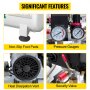 Unser Kompressor ist mit einem Magnetventil, 2 Manometern und einem Sicherheitsventil ausgestattet, um den Luftdruck im Tank zu regulieren und immer in einem normalen Bereich zu halten.