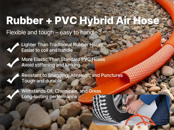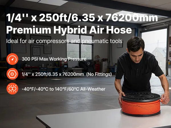 Allwettertauglich: Unser Hybrid-Luftschlauch ist von -40 bis 140 °F/-4,44 bis 60 °C einsetzbar. Er behält seine Flexibilität, ohne zu verhärten, zu knicken oder zu reißen, selbst im Winter im Freien oder in kalten Werkstätten. Die Allwettertauglichkeit gewährleistet einen stabilen Betrieb