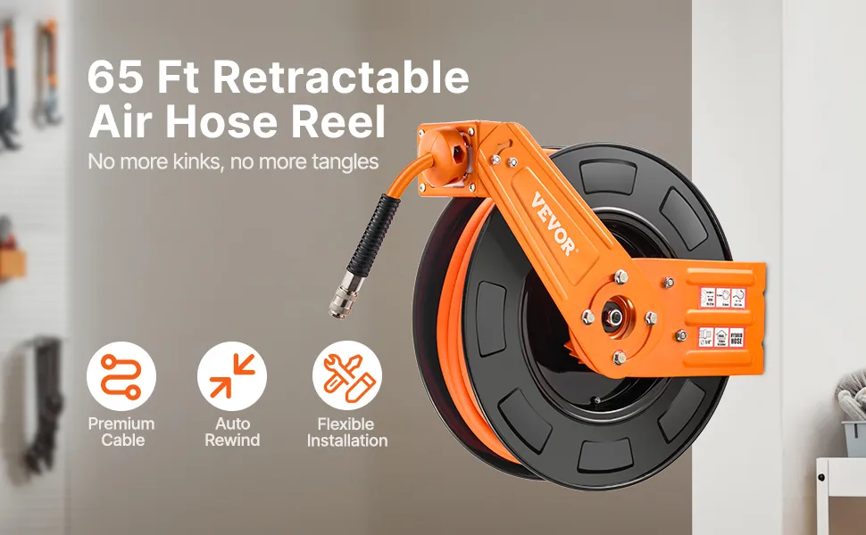 Vielseitige Anwendung: Mit einer großzügigen Länge von 65 Fuß ist unsere Druckluftschlauchtrommel perfekt für eine breite Palette von Industrie- und Heimwerkeranwendungen. Sie eignet sich für Autowerkstätten, Werkstätten, Heimstudios, Garagen und sogar mobile Maschinen. Entscheiden Sie sich für uns und seien Sie mit unserer zuverlässigen und effizienten einziehbaren Druckluftschlauchtrommel bestens auf Ihr nächstes Projekt vorbereitet.