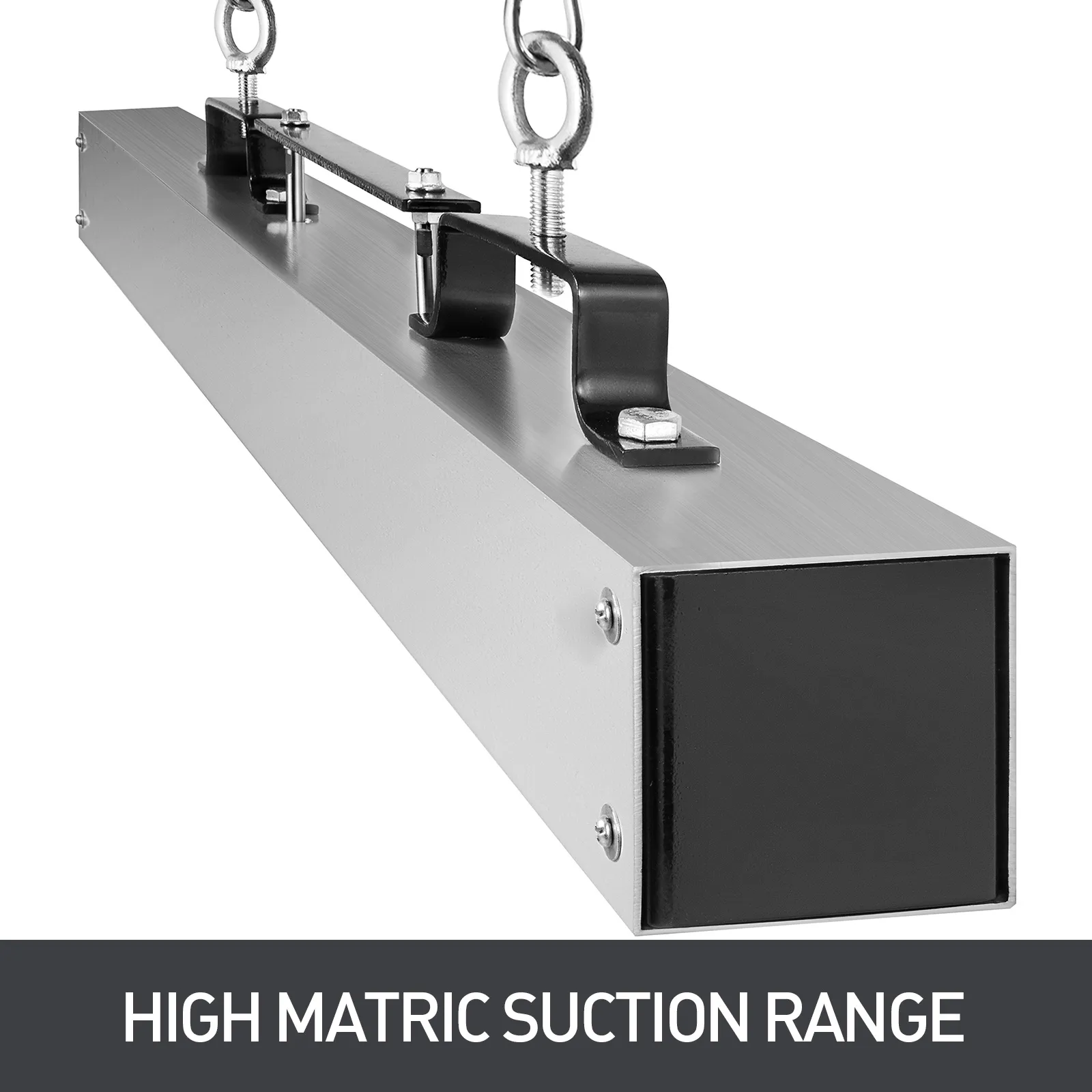 Der leistungsstarke interne Magnet wird vom Lastentriegelungshebel gesteuert und befindet sich in einem robusten Aluminiumgehäuse. Sie können die Halterungen und Ringschrauben verwenden, um den Magneten an Ihrem Gabelstapler zu befestigen.
