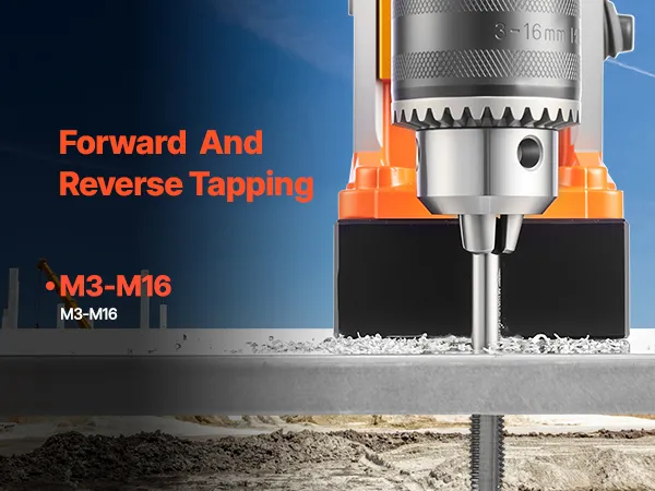 Ausgestattet mit mehreren Bohrern, einem professionellen Spiralbohrerfutter und Vorwärts-/Rückwärtsfunktionen unterstützt diese magnetische Bohrmaschine Lochsägen, Bohren und Gewindeschneiden. Von kleinen Heimwerkerprojekten bis hin zu groß angelegten Industrieanwendungen können alle Ihre Bohranforderungen erfüllt werden.