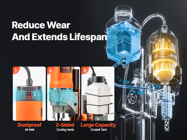 Unsere Magnetbohrmaschine verfügt über einen 1450-W-Motor mit einem variablen Drehzahlbereich von 0-830 U/min, der die Bohrleistung deutlich steigert, insbesondere bei Projekten, die umfangreiches Bohren erfordern. Er sorgt für einen stabileren Betrieb, höhere Präzision und verbesserten Komfort während der Nutzung.