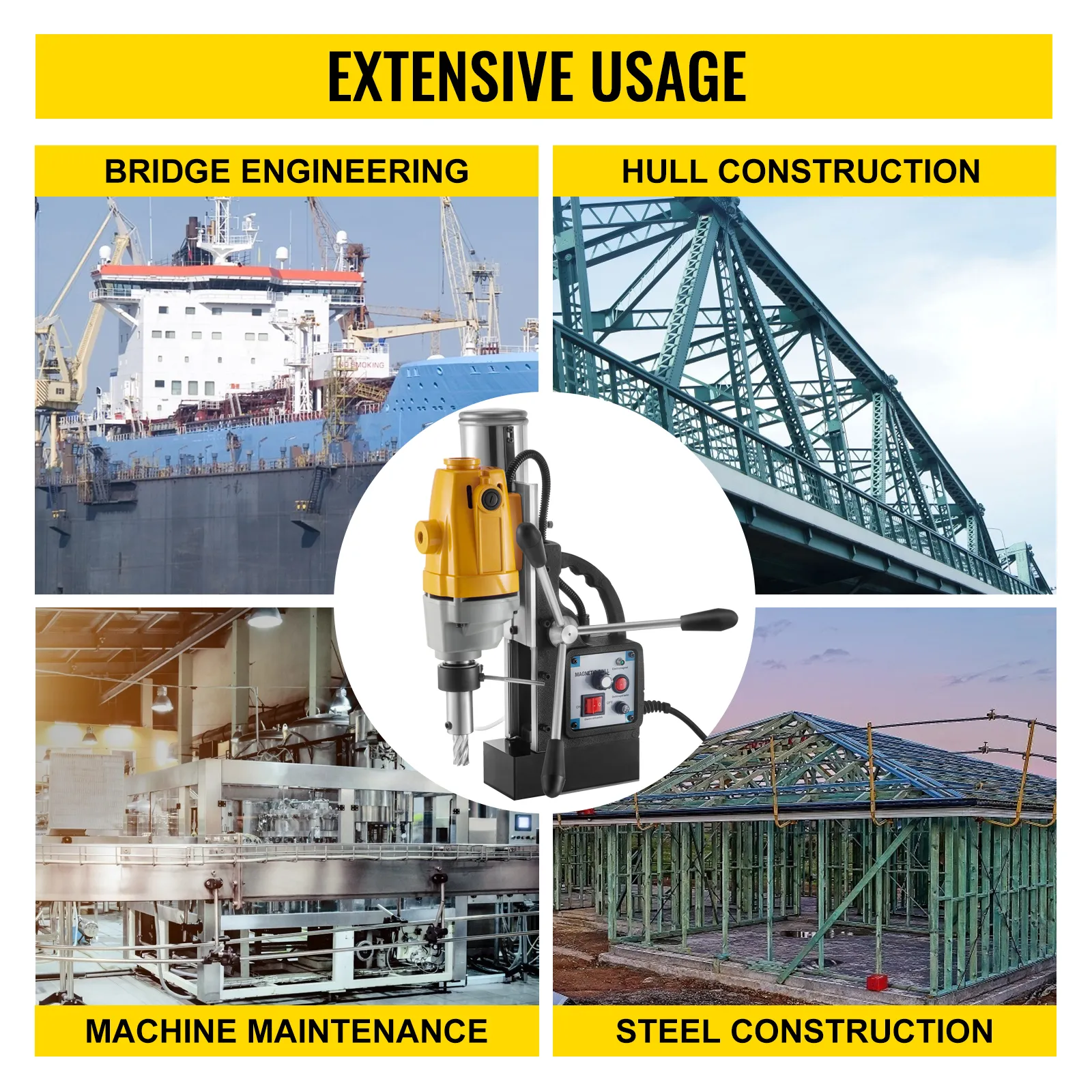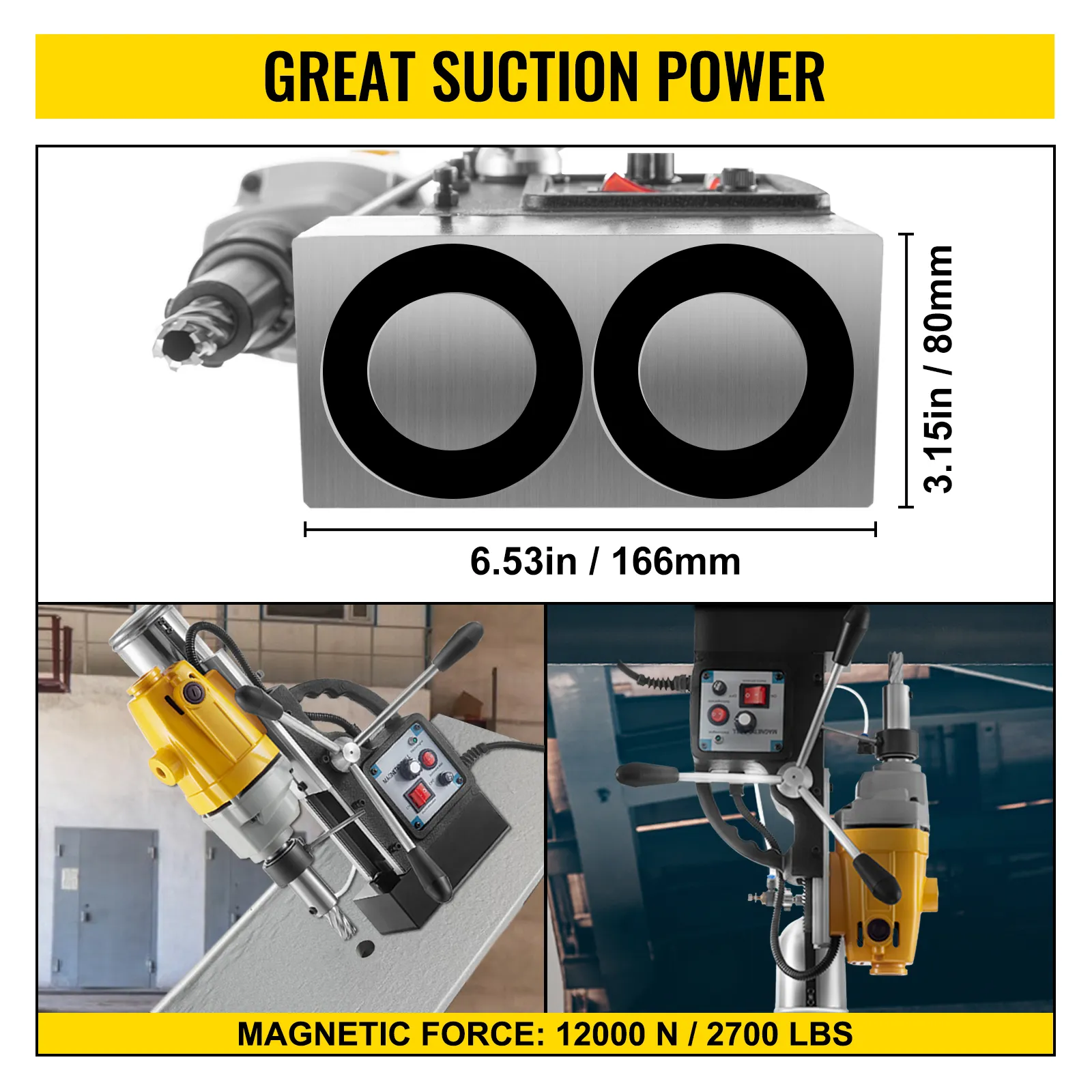 Diese Art von Bohrmaschinenwerkzeugen wurde speziell für Geschwindigkeit und Präzision konzipiert und konstruiert, mit einer soliden magnetischen Haftung von 12000 N und einer optimierten Rotationsgeschwindigkeit von 550 U/min. Sie ist ein unentbehrlicher Helfer für die Durchführung schwerer Industrie- und Stahlbauarbeiten.