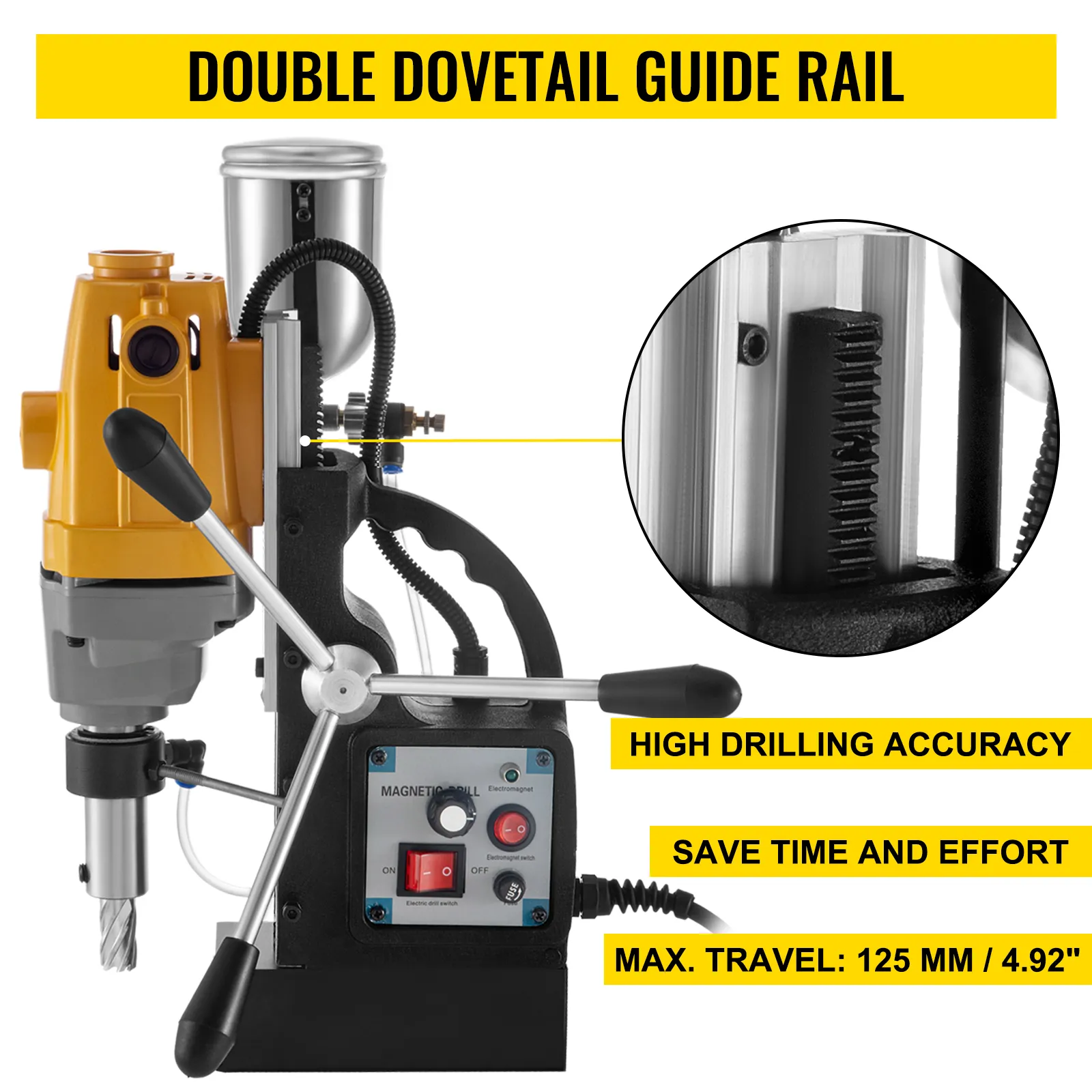 Ausgestattet mit einer robusten elektromagnetischen Basis kann die Magnetkernbohrmaschine eine seitliche und rückwärtige Absaugung erzielen. Seine enorme Größe gewährleistet die Stabilität und Effizienz der Arbeit.