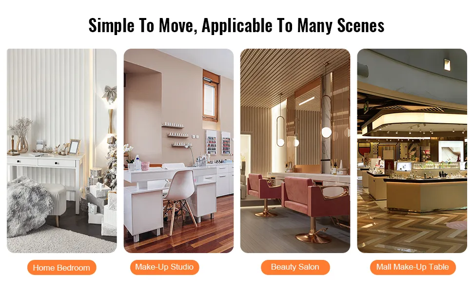 Dreifarbige Lichtquelle: Ausgestattet mit kaltem Licht (6500 K), warmweißem Licht (4000 K) und warmem Licht (3000 K) dreifarbigem Licht mit gleichzeitig stufenlos einstellbarer Helligkeit über den Touchscreen, die das echte Umgebungslicht in verschiedenen Szenen simuliert, egal ob es sich um einen Arbeitsweg am Tag oder eine abendliche Party handelt, das Make-up kann Ihnen die Handhabung erleichtern.