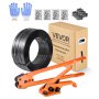Komplettes Set im Lieferumfang enthalten: Das Palettenumreifungsset umfasst 1 Rolle schwarzes PET Umreifungsband (2000 Fuß / 610 m), 1 Bandsspanner, 1 Hochleistungs-Verschließzange, 600 Metallverschlüsse, 200 Eckenprotektoren sowie 1 Paar Handschuhe