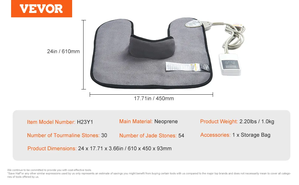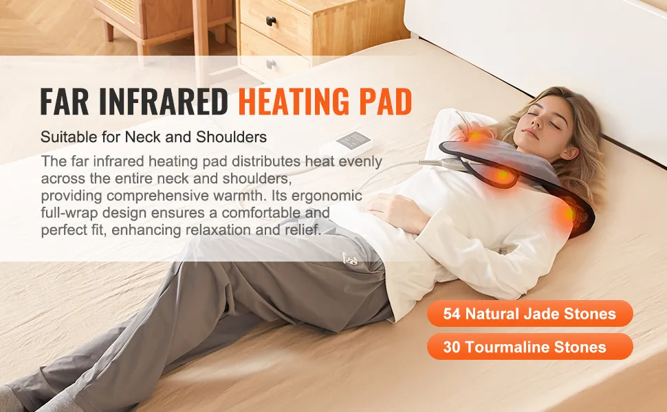 VEVOR Ferninfrarot-Heizkissen, 54 natürliche Jade- und 30 Turmalinsteine, Heizkissen zur Linderung von Nacken- und Schulterschmerzen, 103 - 159 ℉ Heizkissen mit Smart Controller und Abschaltautomatik, ideales Geschenk für Mama und Papa