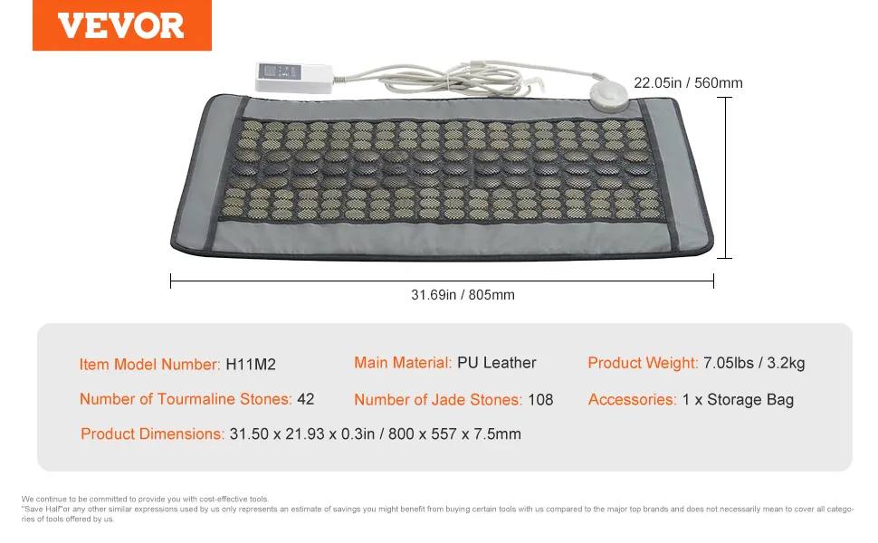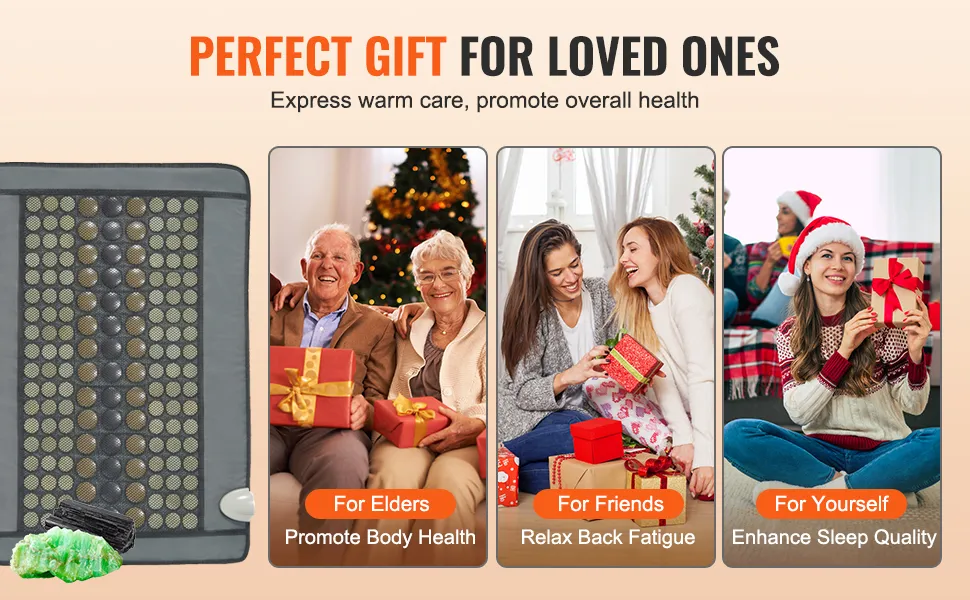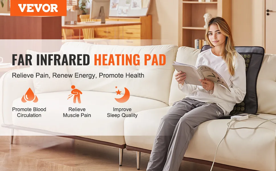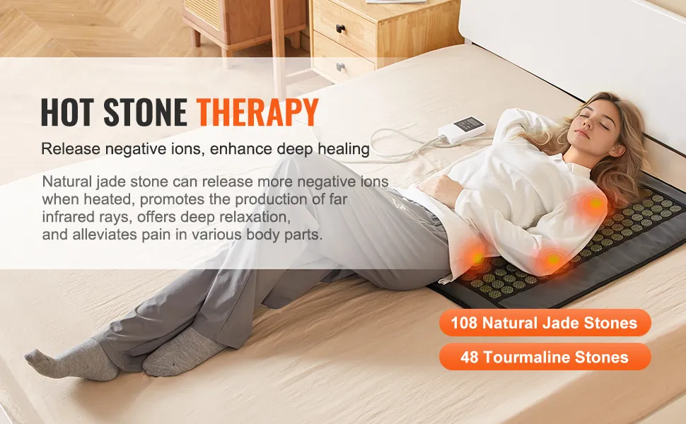 3-in-1-Gesundheitstherapie: Das 800 x 557 mm große Ferninfrarot-Heizkissen von VEVOR kombiniert professionelle Ferninfrarot-Technologie, 108 natürliche Jadesteine und 42 Turmalinsteine, um tief in die Körpermuskulatur einzudringen und sie zu entspannen, die Durchblutung zu fördern, die Schlafqualität zu verbessern und die Vitalität des Körpers wiederherzustellen – perfekt für die tägliche Entspannung und Stresslinderung.