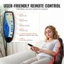 Frau verwendet ein VEVOR-Massagesitzkissen mit Wärmefunktion und hebt mehrere Funktionsmodi auf dem Bedienfeld hervor.