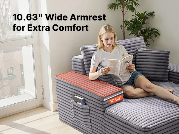 Die hochwertige Polsterung fühlt sich angenehm an, während die 11 Zoll (279 mm) breiten Armlehnen und praktischen Seitentaschen Ihr Liegeerlebnis verbessern.