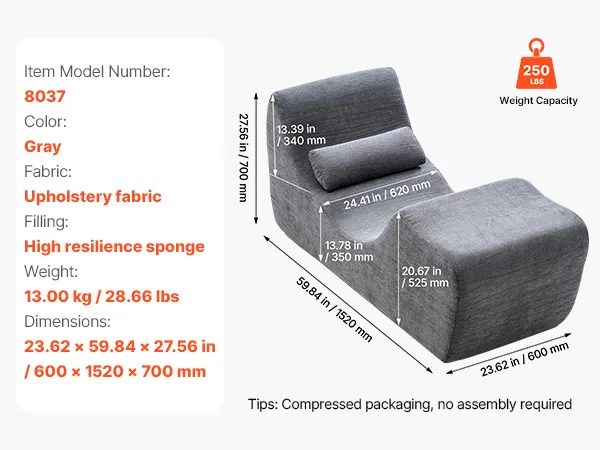 Kein Zusammenbau erforderlich: Unsere Chaiselongue wird vakuumverpackt geliefert und benötigt weder Werkzeug noch Schrauben. Einfach auspacken, auslüften und 48–72 Stunden warten, bis er sich vollständig entfaltet hat. Sparen Sie Zeit und genießen Sie Ihren bequemen Akzentstuhl sofort