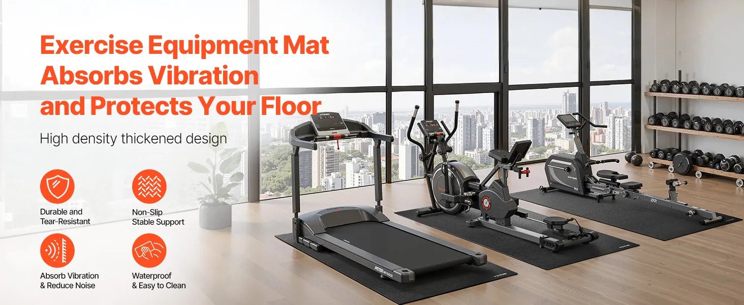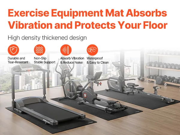 Diese Trainingsgerätematte bietet rutschfesten, stabilen Halt, Stoßdämpfung, Geräuschreduzierung und ist wasserabweisend und leicht zu reinigen, wodurch Ihre Böden und Teppiche wirksam geschützt werden.