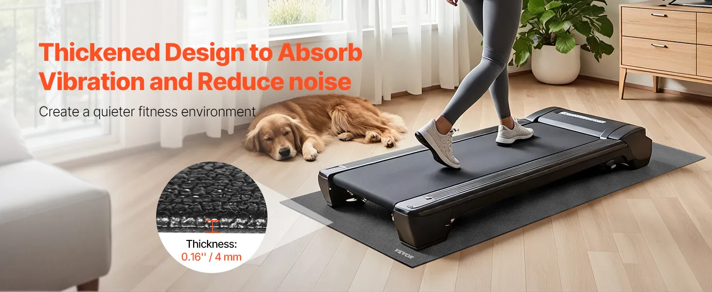 Die Laufbandmatte hat eine Dicke von 4 mm und bietet hervorragende Stoßdämpfung und Geräuschreduzierung, wodurch eine ruhigere Trainingsumgebung entsteht.