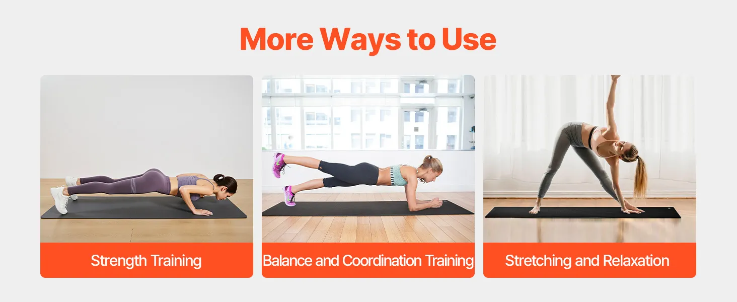 Diese Fitnessmatte ist nicht nur für schwere Geräte geeignet, sondern auch ideal für Krafttraining, Gleichgewichts- und Koordinationsübungen, Dehnung und Entspannung.