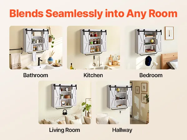 Dieser multifunktionale Badezimmerschrank fügt sich nahtlos in Badezimmer, Küchen, Schlafzimmer, Wohnzimmer, Flure und andere Wohnräume ein. Er lässt sich flexibel zur Aufbewahrung von Toilettenartikeln, Küchenutensilien, zum Ordnen von Unordnung im Schlafzimmer oder zur Dekoration von Wohnzimmerwänden anpassen.