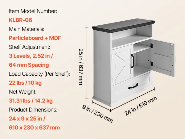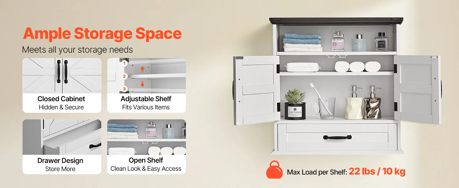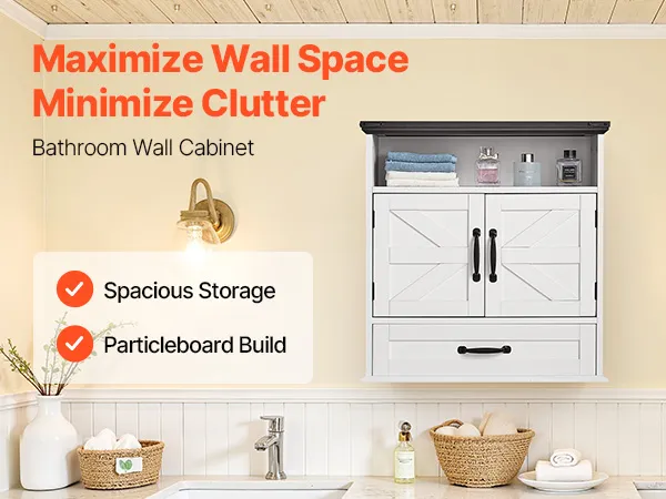 Dieser Badezimmer-Wandschrank besteht aus hochwertiger Spanplatte, ist robust, langlebig und ansprechend. Sein geräumiger Innenraum mit dreifach verstellbarem Regal maximiert die vertikale Lagerung. Unser Badezimmer-Wandschrank erfüllt die Aufbewahrungsbedürfnisse verschiedener Toilettenartikel und sonstiger Gegenstände.