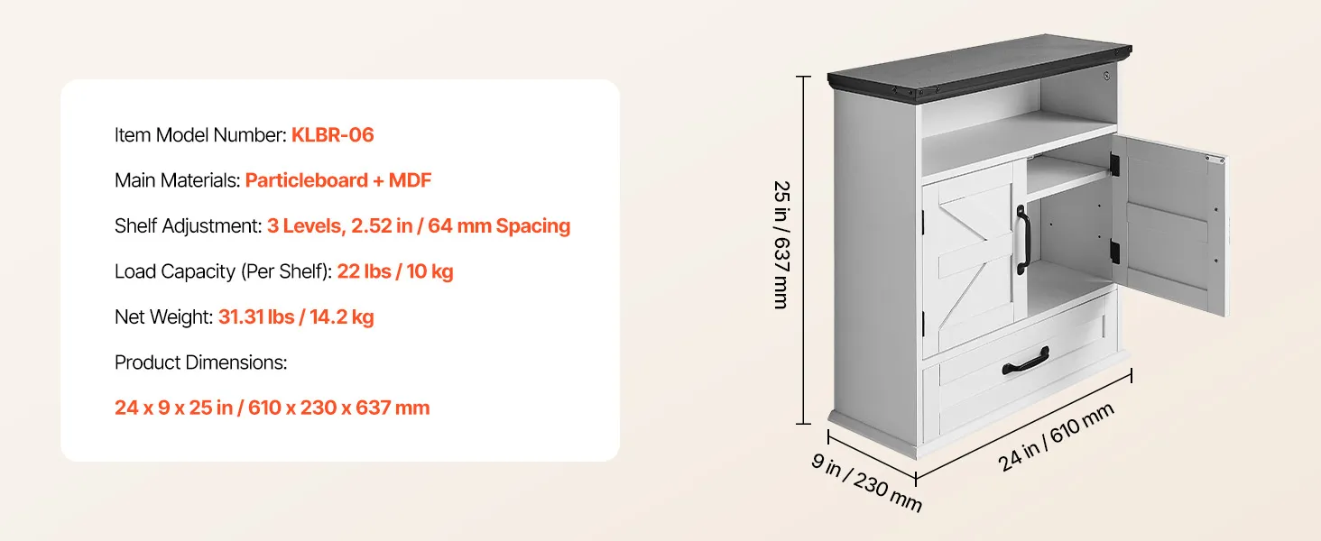 Dieser Medizinschrank verfügt über ein sicheres, stabiles Montagedesign und wird mit einer ausführlichen Bedienungsanleitung und einem kompletten Werkzeugsatz geliefert. Für eine einfache Installation sind keine komplizierten Schritte erforderlich. Ob Anfänger oder Laie, Sie können den Schrank schnell an der Wand montieren.