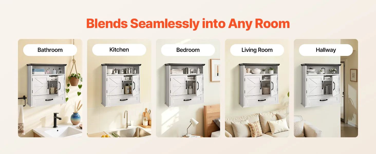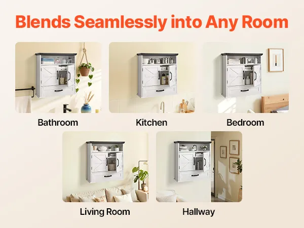 Dieser multifunktionale Badezimmerschrank fügt sich nahtlos in Badezimmer, Küchen, Schlafzimmer, Wohnzimmer, Flure und andere Wohnräume ein. Er lässt sich flexibel zur Aufbewahrung von Toilettenartikeln, Küchenutensilien, zum Ordnen von Unordnung im Schlafzimmer oder zur Dekoration von Wohnzimmerwänden anpassen.