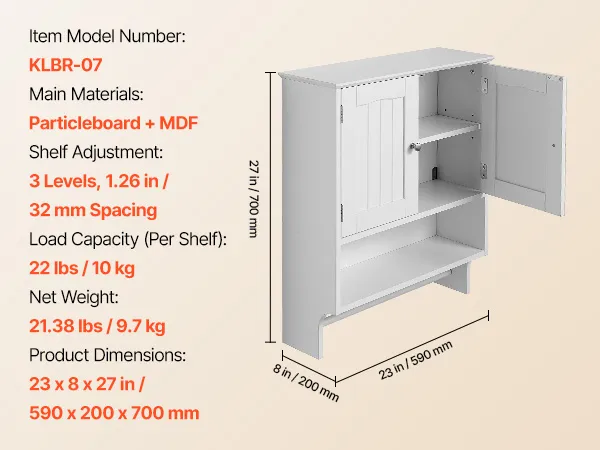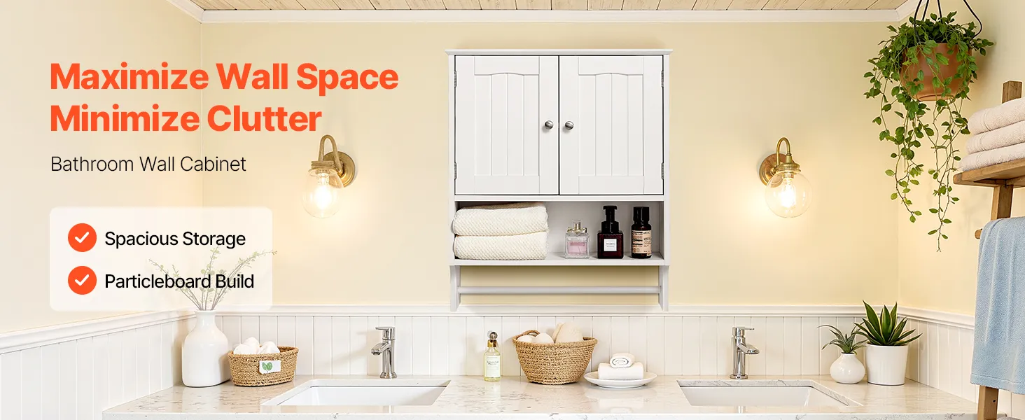 Dieser Badezimmer-Wandschrank besteht aus hochwertiger Spanplatte, ist robust, langlebig und ansprechend. Sein geräumiger Innenraum mit dreifach verstellbarem Regal maximiert die vertikale Lagerung. Unser Badezimmer-Wandschrank erfüllt die Aufbewahrungsbedürfnisse verschiedener Toilettenartikel und sonstiger Gegenstände.