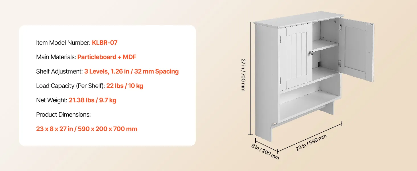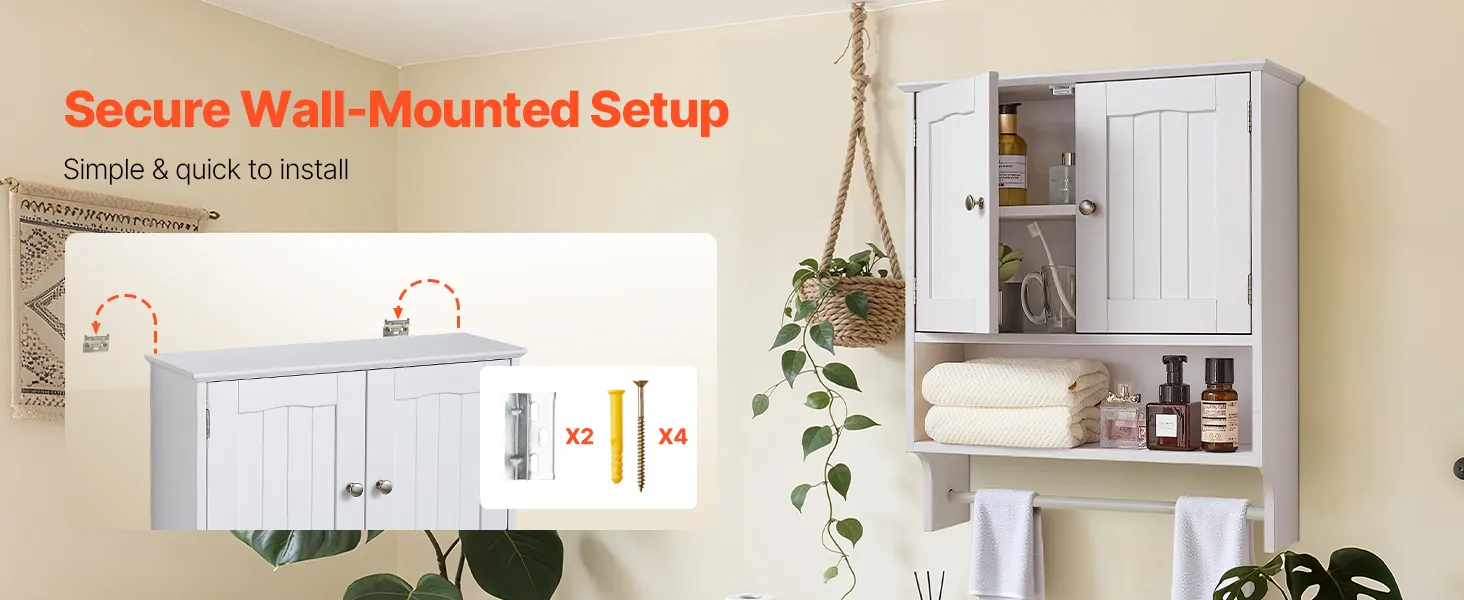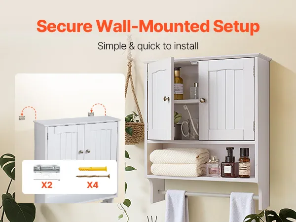 Dieser Hängeschrank verfügt über ein sicheres, stabiles Montagedesign und wird mit einer ausführlichen Bedienungsanleitung und einem kompletten Werkzeugsatz geliefert. Für eine einfache Installation sind keine komplizierten Schritte erforderlich. Ob Anfänger oder Laie, Sie können den Schrank schnell an der Wand montieren.