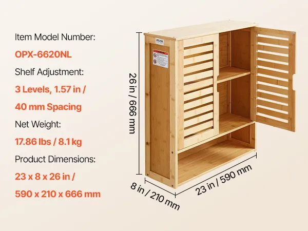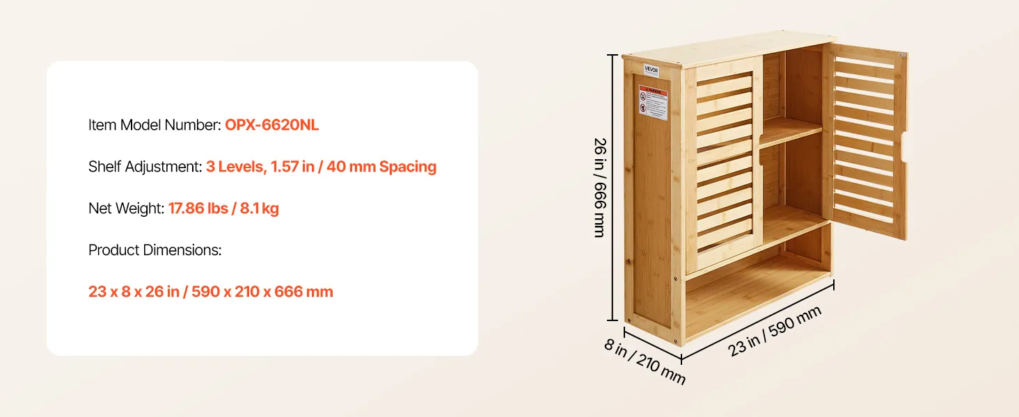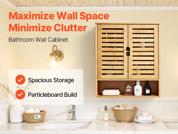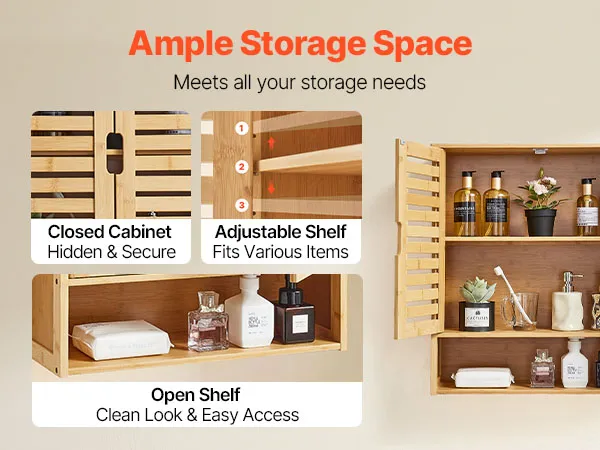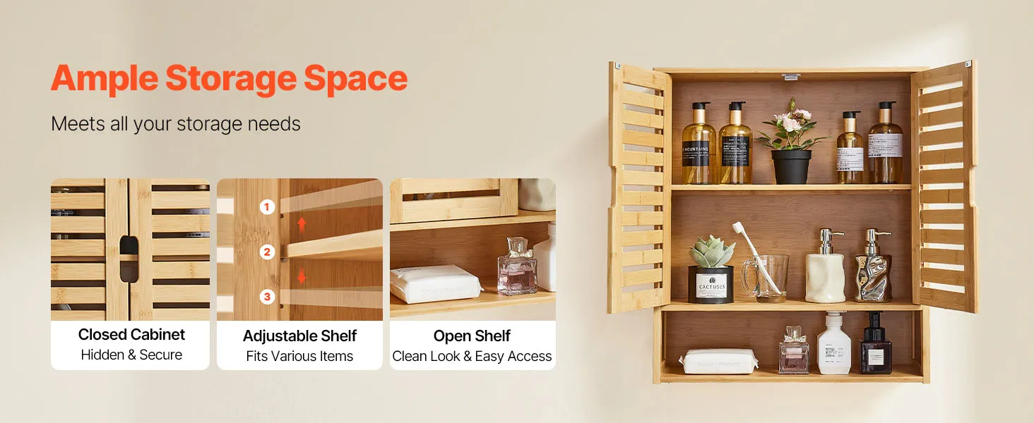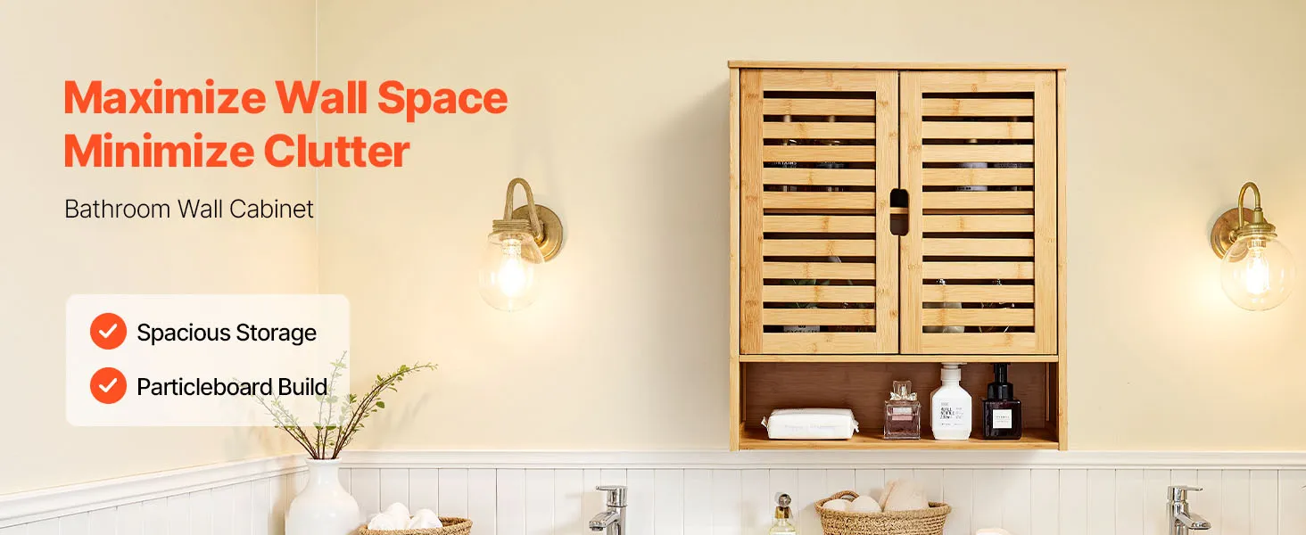 VEVOR Badezimmer Wandschrank Medizinschrank mit 2 Türen & verstellbaren Regalen, Aufbewahrungsschrank über der Toilette zur Wandmontage, Hängeschrank mit offener Trennwand für Küche, Toilette