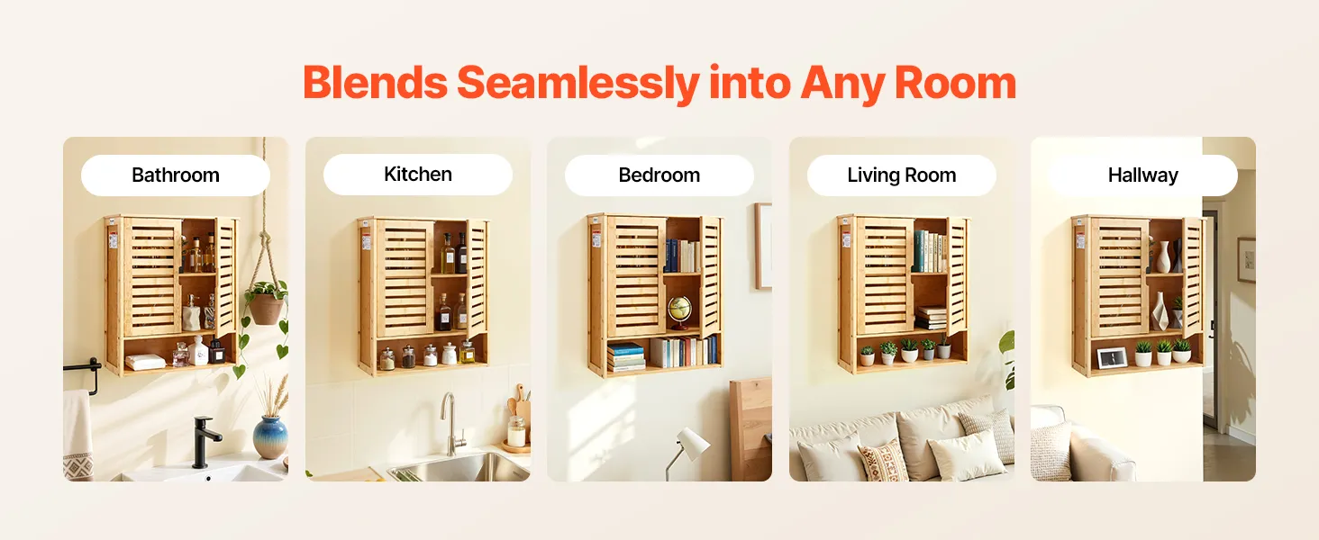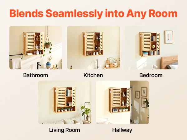 Dieser multifunktionale Badezimmer-Wandschrank fügt sich nahtlos in Badezimmer, Küchen, Schlafzimmer, Wohnzimmer, Flure und andere Wohnräume ein. Er lässt sich flexibel zur Aufbewahrung von Toilettenartikeln, Küchenutensilien, zum Ordnen von Unordnung im Schlafzimmer oder zur Dekoration von Wohnzimmerwänden anpassen.