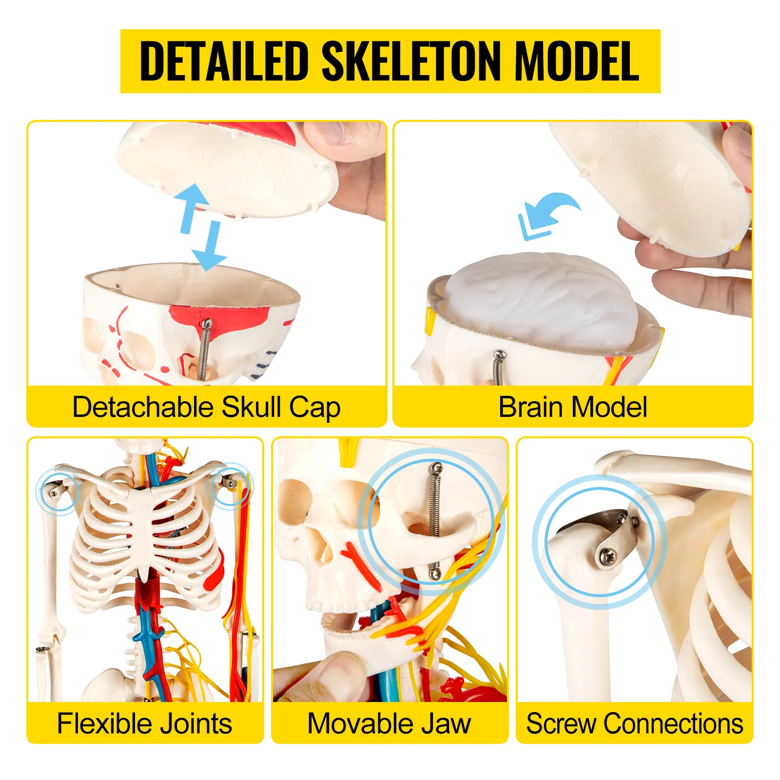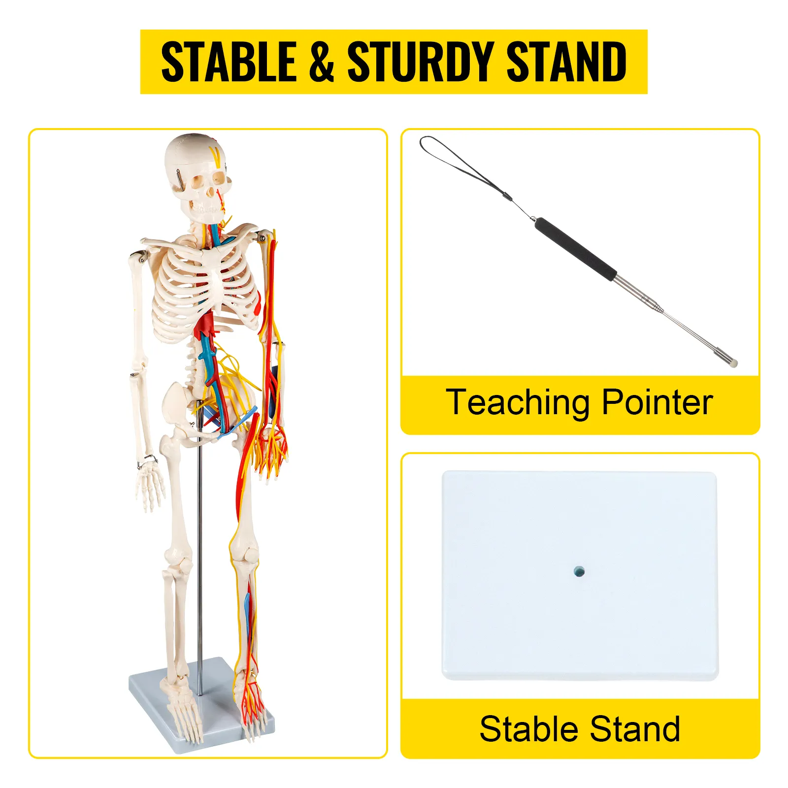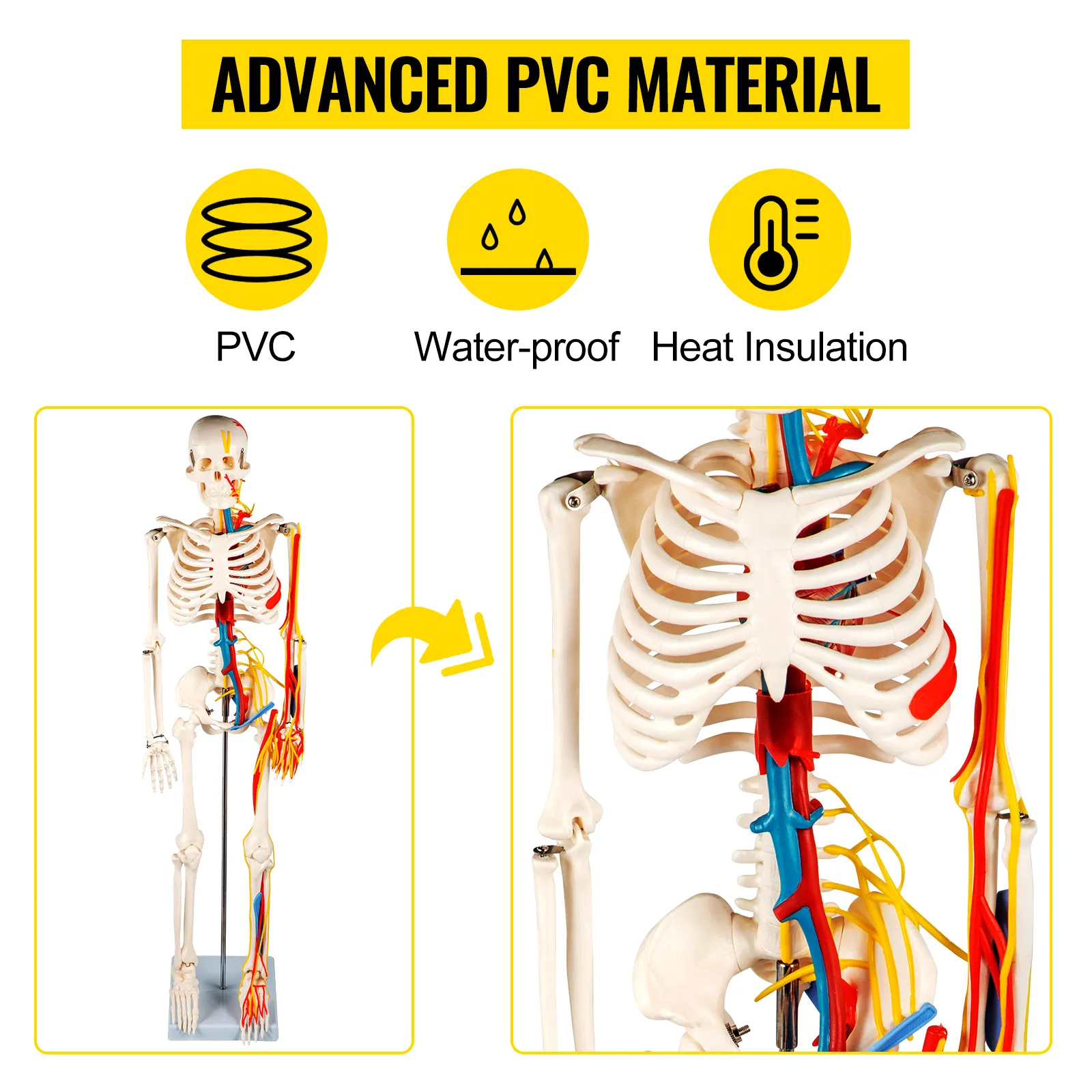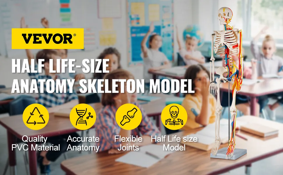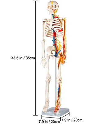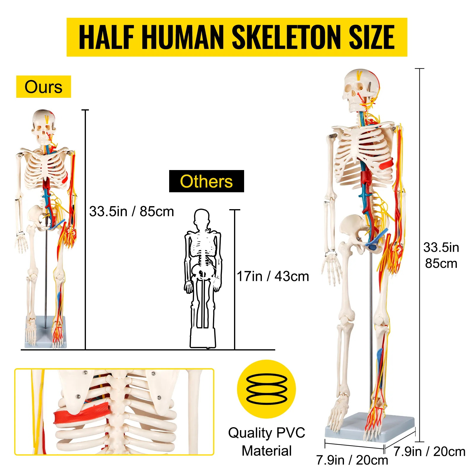 Dieses Skelettmodell in halber Lebensgröße stellt das menschliche Skelettsystem sowie das Nerven- und Gefäßsystem anatomisch korrekt dar und entspricht dem tatsächlichen menschlichen Skelett. Es ist aus hochwertigem PVC-Material hergestellt, das eine lange Lebensdauer gewährleistet. Geeignet für den Schulunterricht, das Anatomiestudium und die professionelle Forschung.NKlare Nerven & Blutgefäße