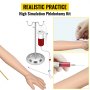 Das Kit vermittelt ein realistisches Gefühl. Das Armmaterial fühlt sich wie menschliche Haut an. Dies macht es zu einem effektiven Hilfsmittel für das Training. Das Üben mit diesem Arm hilft dabei, die erforderlichen Fähigkeiten zu entwickeln. Mit dem Kit können Benutzer das Gefühl des Einführens von Nadeln erleben. Dieses realistische Gefühl erleichtert den Übergang zu echten Patienten. Synthetisches Blut trägt zum Realismus bei. Es hilft dabei, zu simulieren, wie der Blutentnahmeprozess genau durchgeführt wird. Dieser Grad an Realismus ist für effektive Trainingszwecke unerlässlich. Als Teil eines medizinischen Lehrmodells ist dieses Kit eine wertvolle Ressource zum Erlernen von Venenpunktionstechniken.